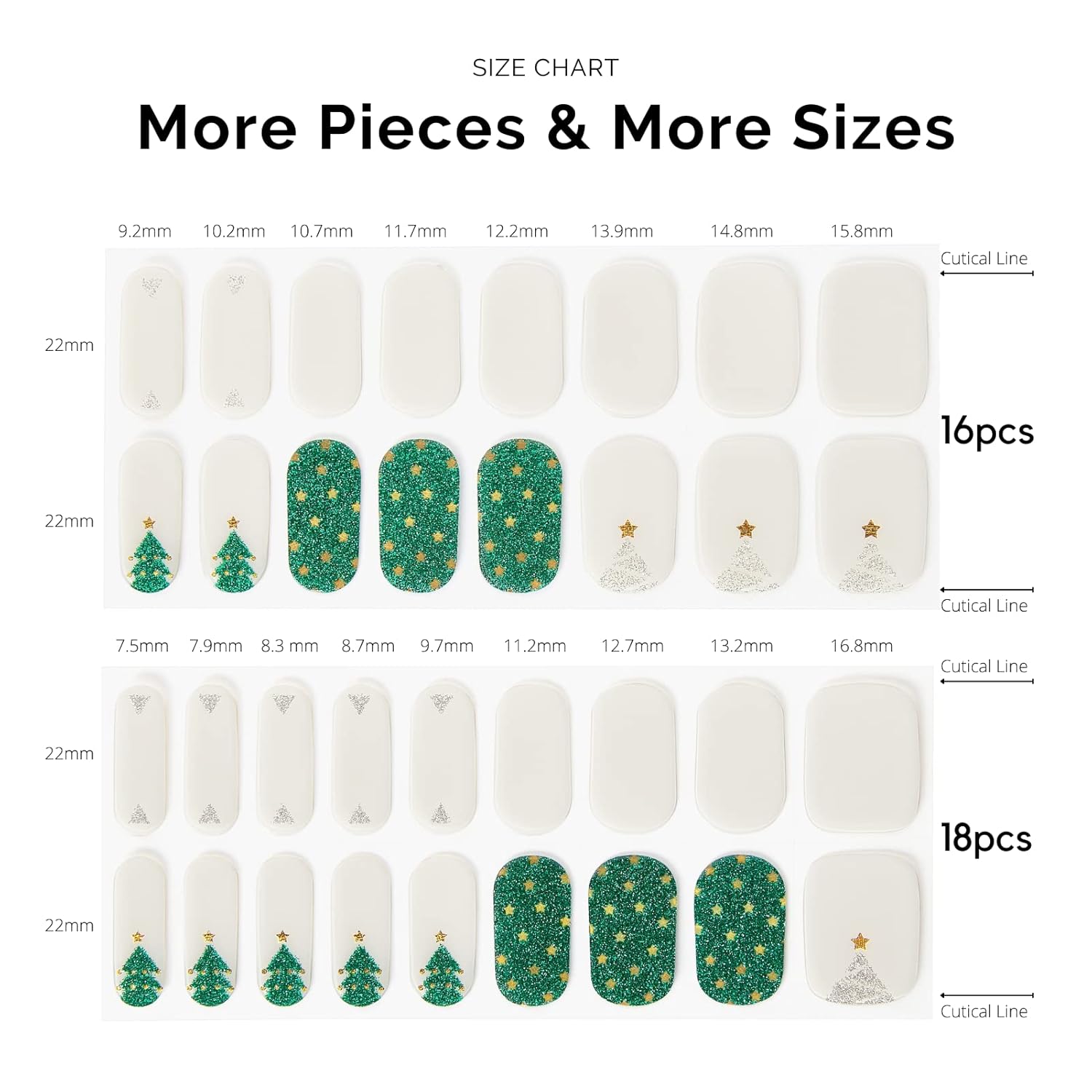 - 34 PCS NAIL STRIPS: More Quantity & Sizes than Ever! With 17 different sizes of our nail art stickers, you can easily find the right size to match your nails. New curved side line fits even better with your nail shape for seamless adhesion.
