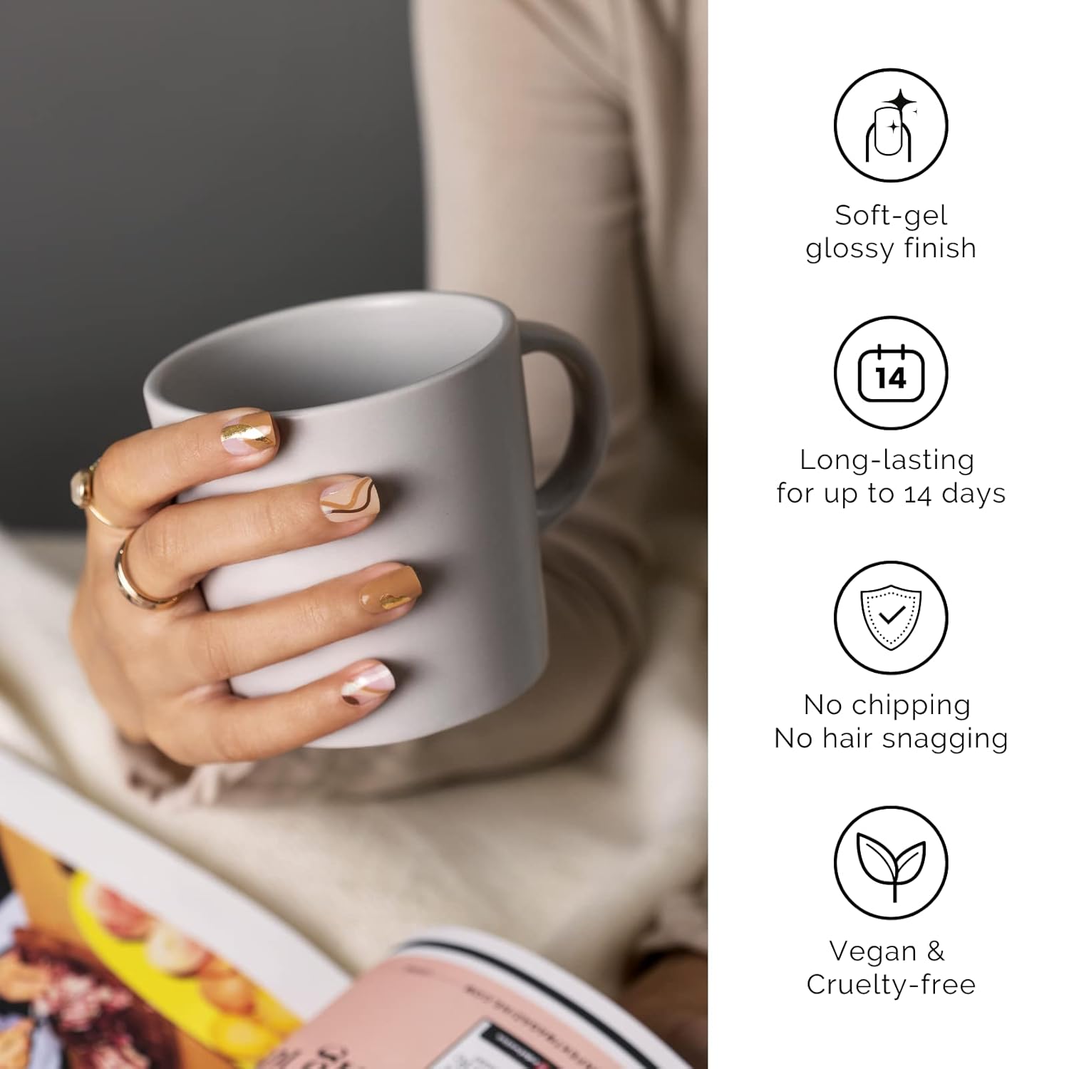 Nailog Semi Cured Gel Nail Strips 34 pcs| Long Lasting Nail Polish Sticker Wraps with Glossy Gel Finish, Maze