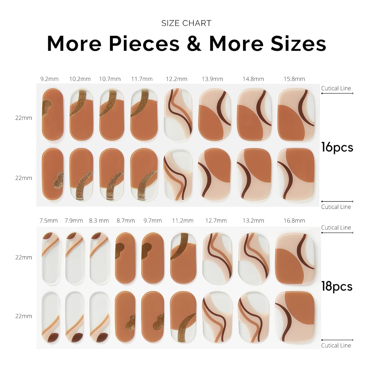 - ă34 PCS NAIL STRIPSăMore Quantity & Sizes than Ever! - With 17 different sizes of our nail art stickers, you can easily find the right size to match your nails. - New curved side line fits even better with your nail shape for seamless adhesion.