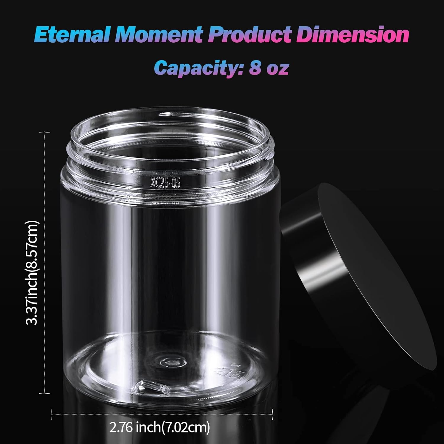 48 Pack 8 OZ Plastic Jars Round Clear Cosmetic Container Jars with Lids, Eternal Moment Plastic Slime Jars for Lotion, Cream, Ointments, Makeup, Eye shadow, Rhinestone, Samples, Pot, Travel Storage