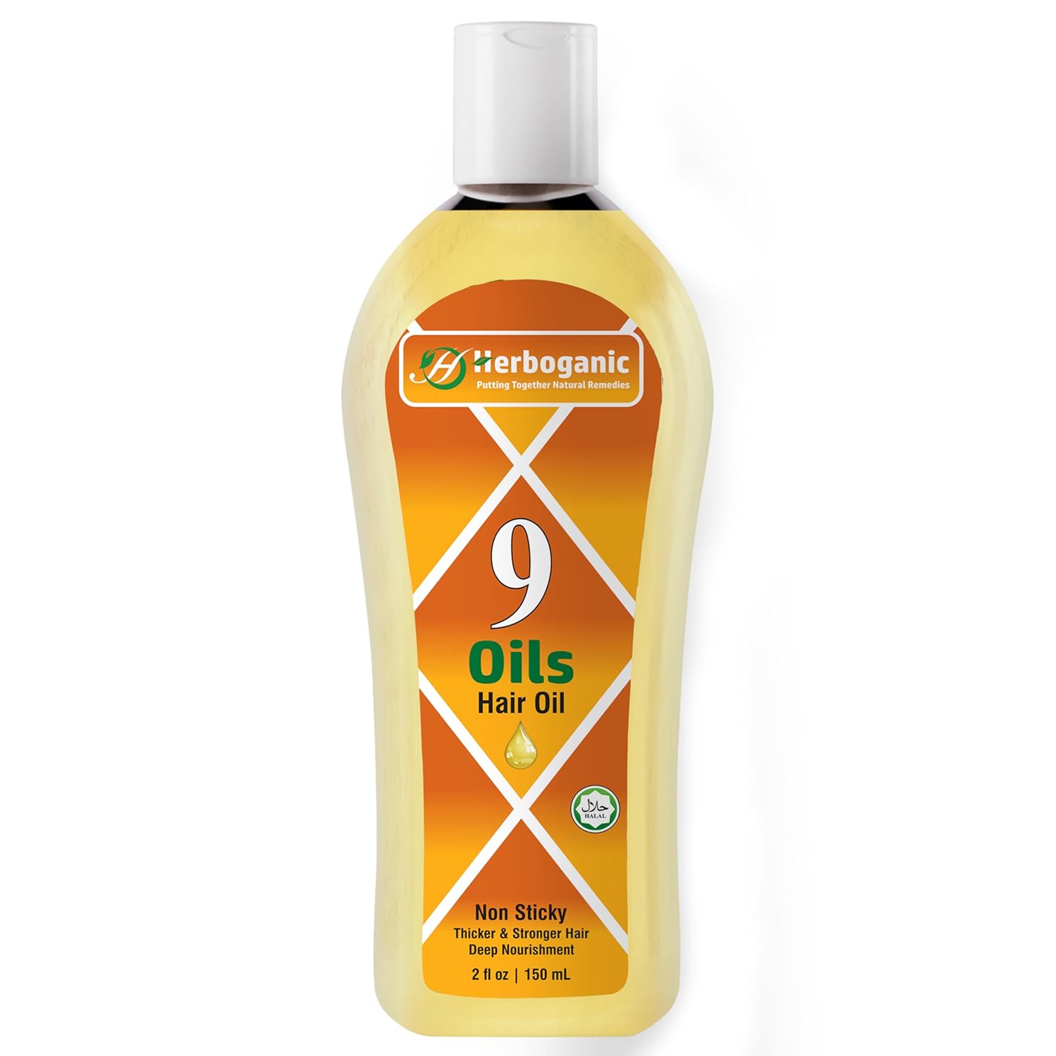 9 Oils Hair Oil - Herbal Blend of Jojoba, Almond, Olive, Argan, Amla, Coconut, Castor oil, Onion oil and Vitamin E - Hair oil for Hair Growth, thickness and damaged hairs - Non Greasy | 5 oz