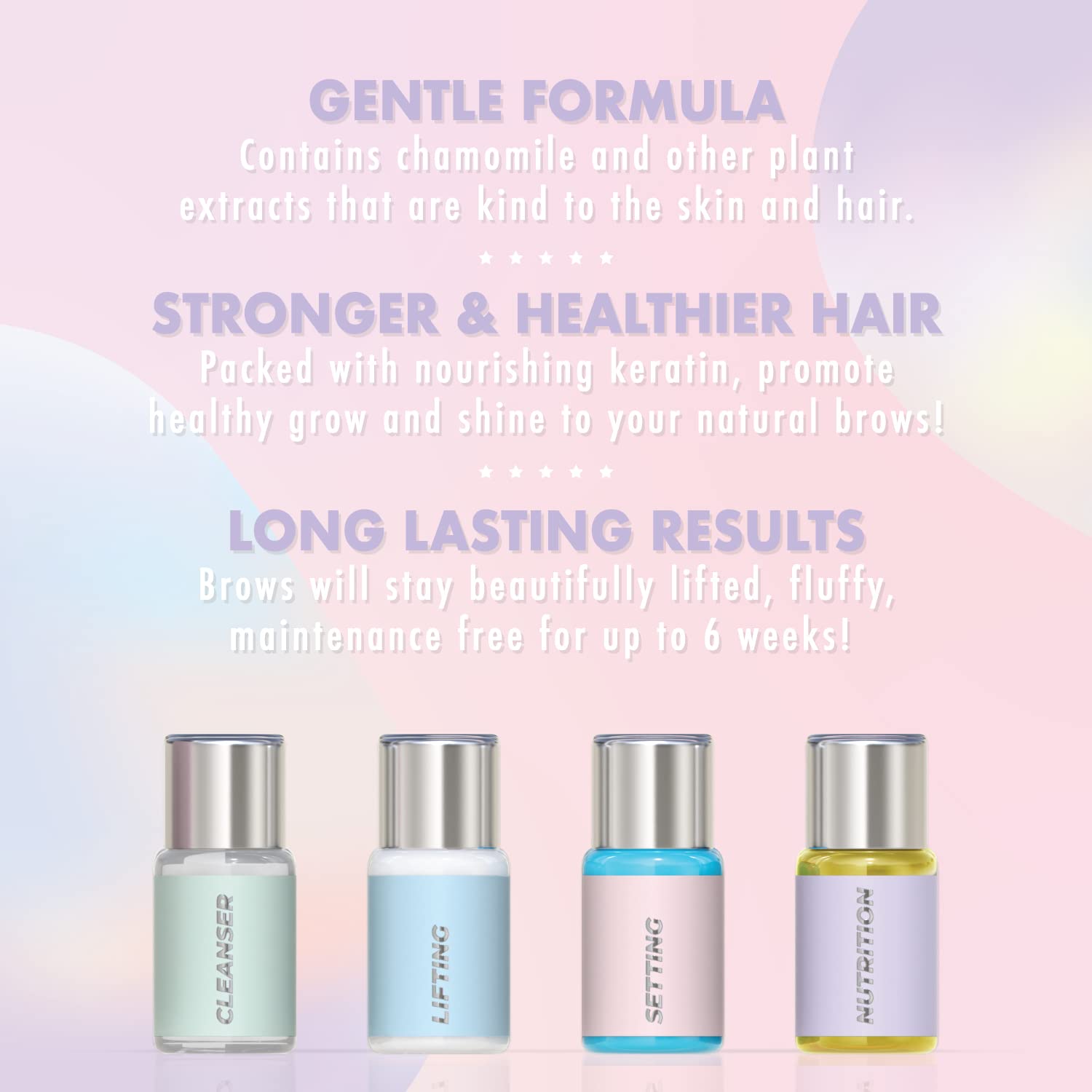 - 🦋 GENTLE FORMULA, KIND TO SKIN - Our gentle formula contains Keratin and plant extracts such as chamomile and rose oil which are kind to both the skin and hair. It promotes healthy hair growth and shine while also providing the perfectly lifted brows that last up to six weeks. With our eyebrow lamination kit, you can get your dream brows while making them naturally stronger and healthier at the same time!