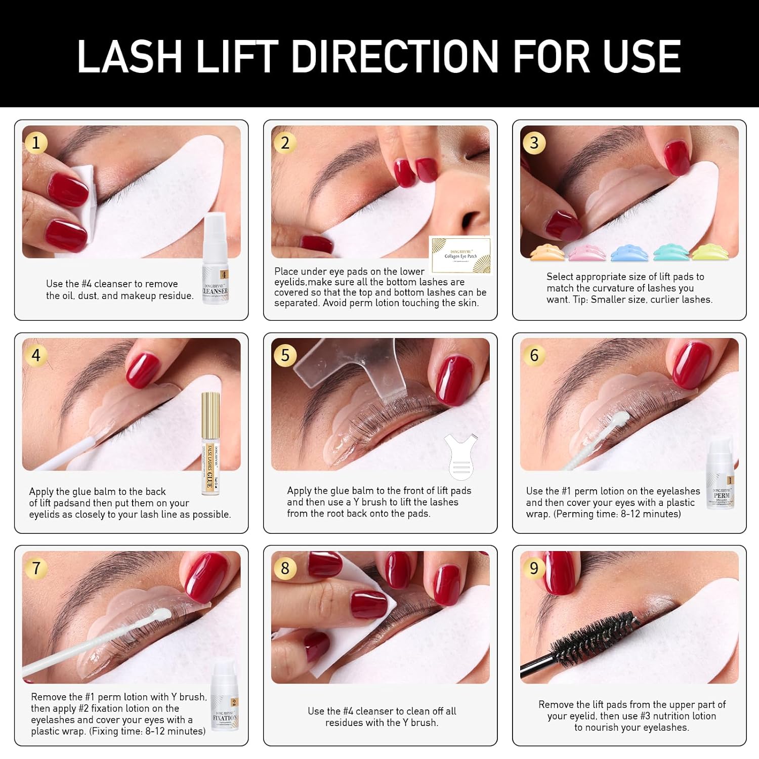 - Vacuum Packaged Design: Different from other brand, DONG RHYME Eyelash Perm Kit use press bottle which can control the amount of cosmetics used freely, minimize contact of the cosmetics with the outside air. Salon Quality Diy lash lift kit at home!