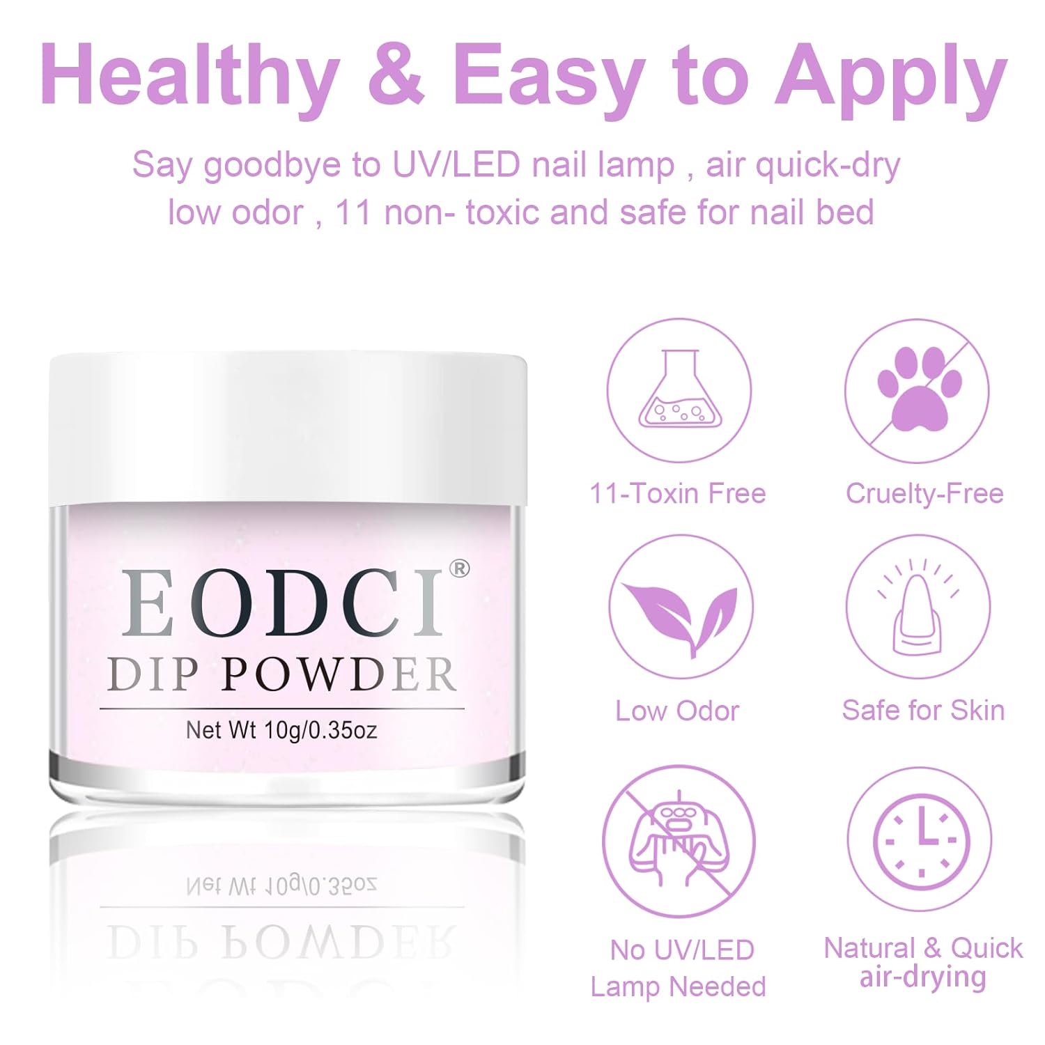- 【No Lamp Needed】Eodci Nail Dipping Powder does not require UV/LED light to cure, is skin friendly while avoiding skin darkening and damage, safe and easy to use, suitable for beginners and professional nail salons.
