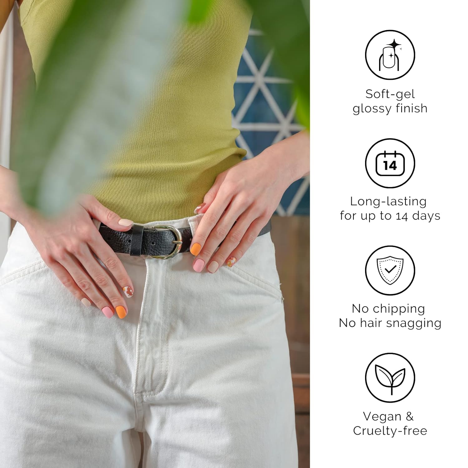- SALON QULITY: Made of real nail polish 60% precured, soft to fit all nail shapes - Nailog semi cured gel nail strips with waterproof top gel last up to 2 weeks once cured with a UV lamp. Our gel nails are also extremely lightweight so they do feel like your own nails!