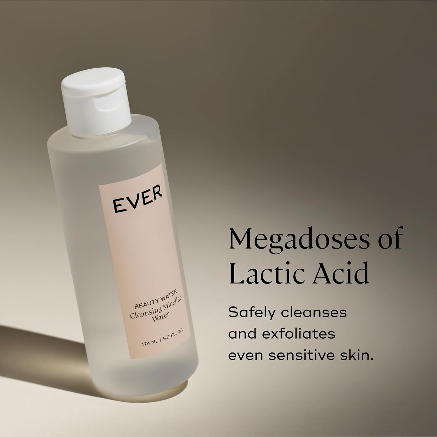 EVER Beauty Water Micellar Cleaning Water & Eye Makeup Remover – Rose Water, Lactic Acid & Pro/Prebiotics Cleanser for Sensitive Skin, Removes Waterproof Makeup, Tones & Hydrates - 5.9 fl oz