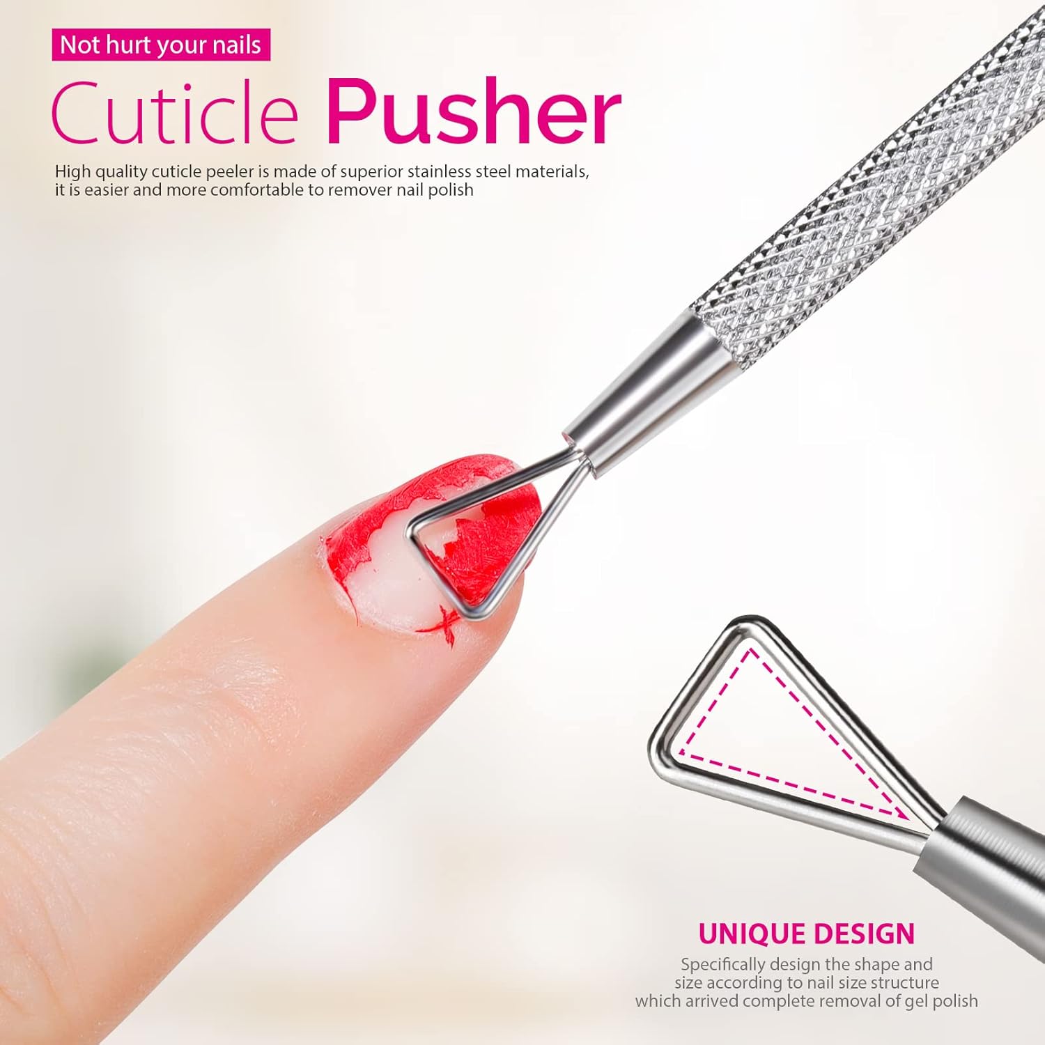 - Nail Gel Remover Kit: Gel nails removal is not easy part. You need to remove gel polish but nail salon will spent lost of time. And we provide the soak off nail clips kit, can remove gel nail at home Include tool for soak, dissolve, and remove gel polish. Nail file, nail brushes, nail remover pads, nail clips, cuticle pusher and buffer block