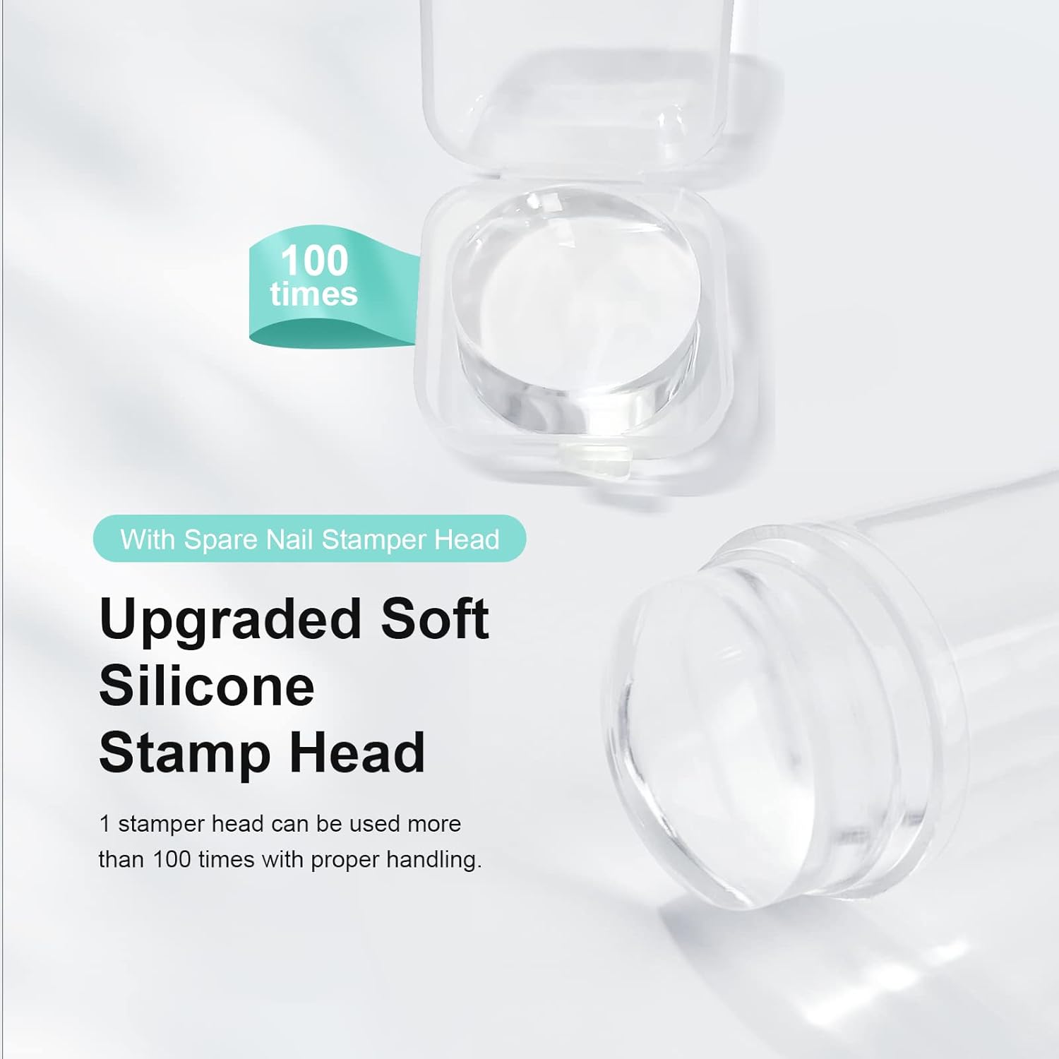 X&D Nail Art Stamper Clear Jelly Nail Art Stamping Transparent Silicone Rubber Nail Polish Stamper with Acrylic Scraper, Spare head Kit for French Tips and Transfer Images