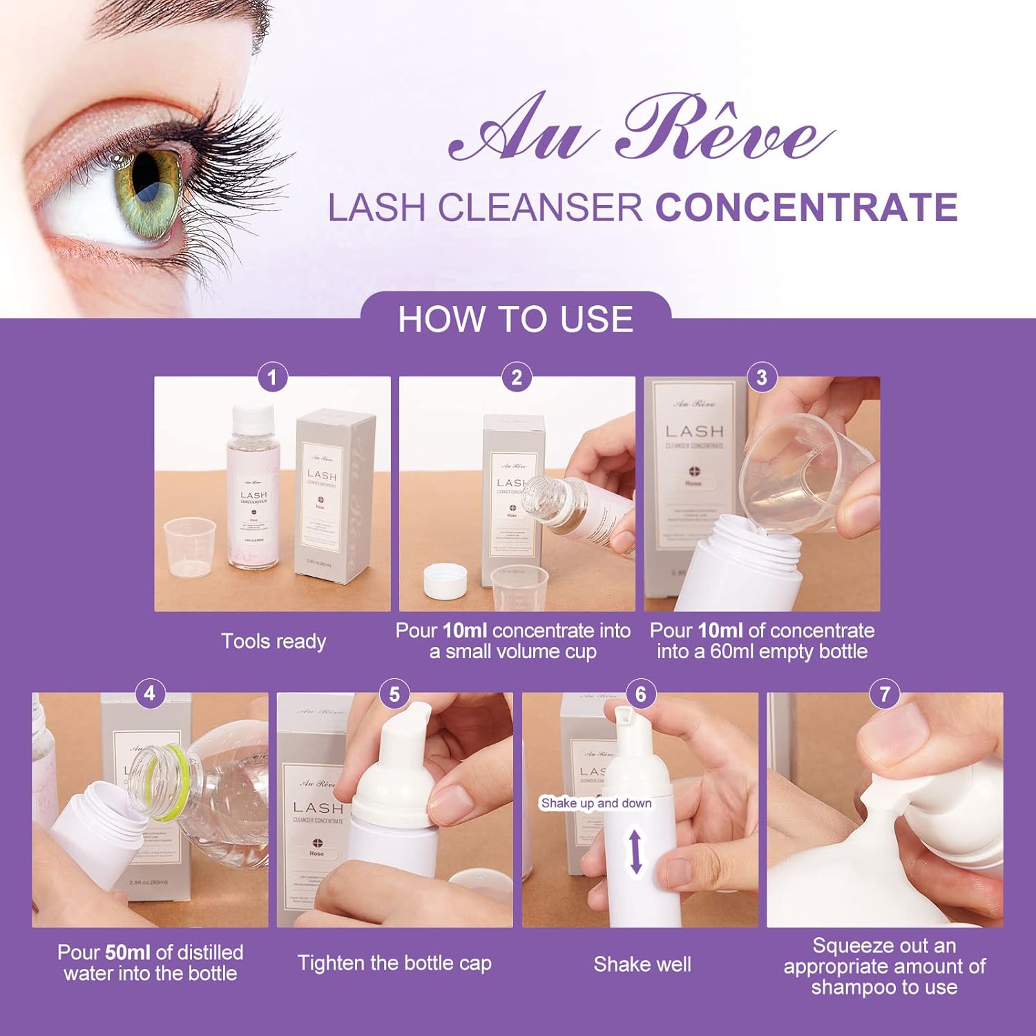 - This product is a lash shampoo concentrate, which can also be called a serum. Before use, it needs to be mixed with distilled water in the ratio of 1:5, i.e. 10ml of concentrate to 50ml of distilled water, put him into the shampoo bottle and shake well to use.Note: Be sure to mix in the correct ratio.