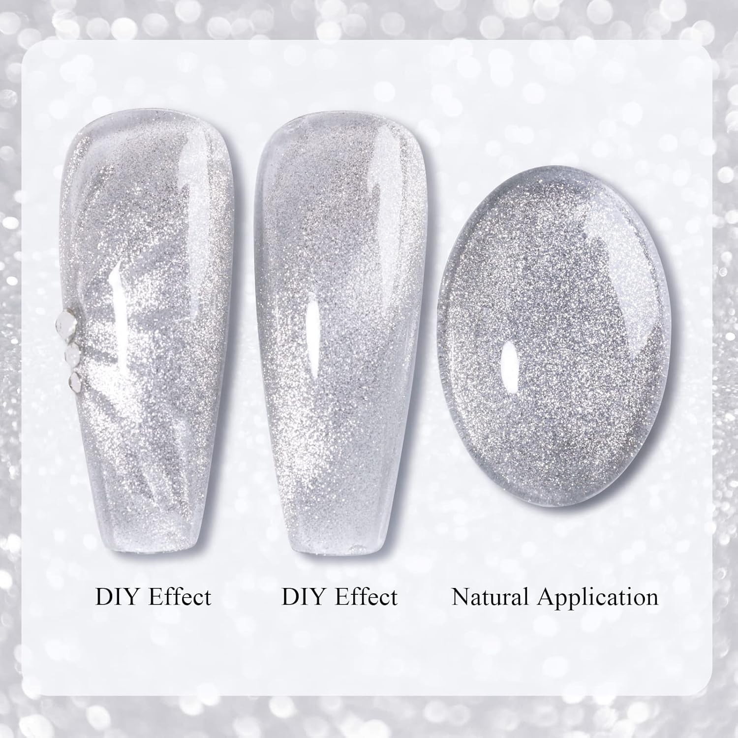 Imtiti Silver Cat Eye Gel Polish,0.5 fl.oz Holographic 9D Glitter Magnetic Soak Off UV LED Gel Nail Polish with Magnetic Stick for Nail Salon
