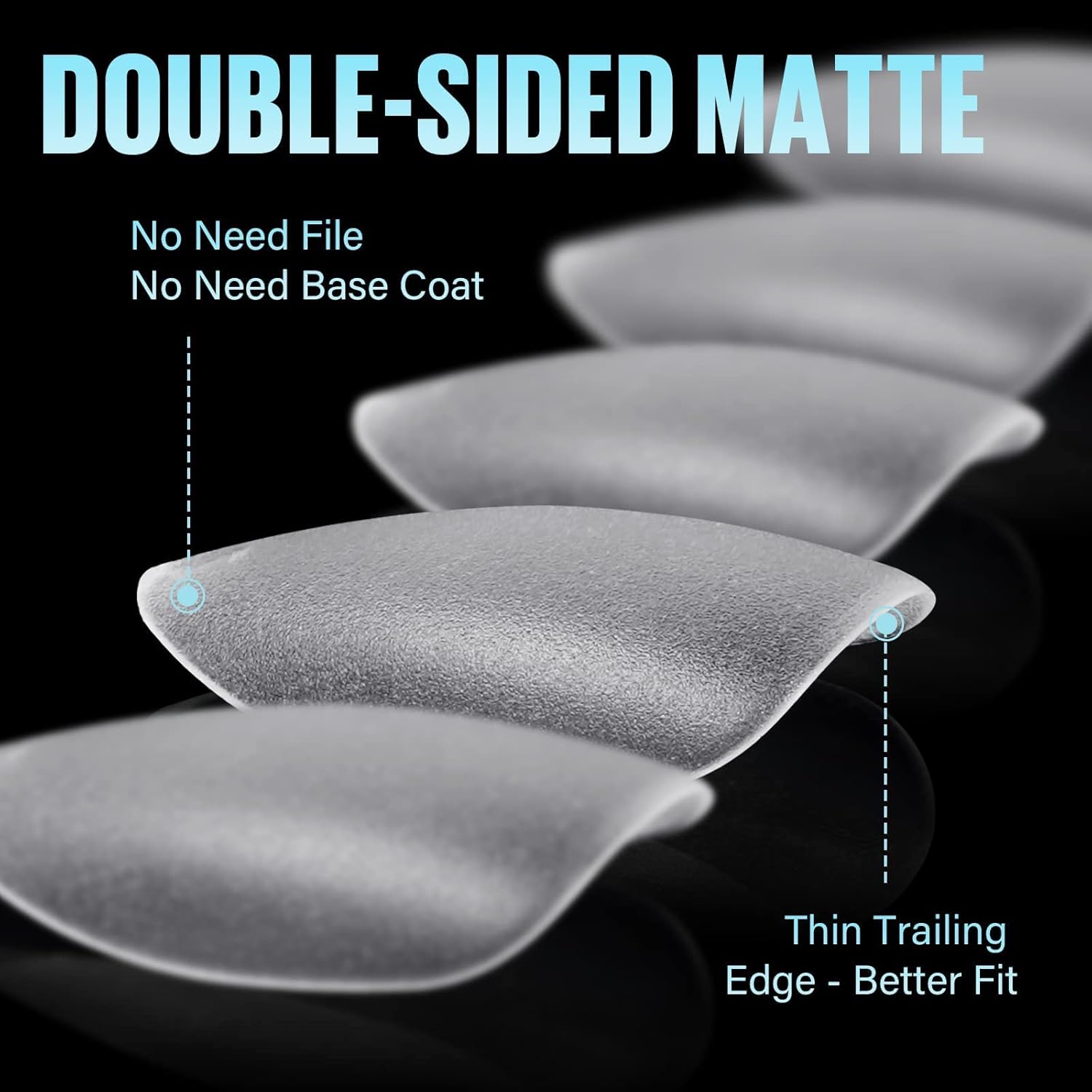 - 【Pre Buffed Nail Tips】The upgraded pre-buffed nail tips give you the privilege of "no file, no base coat". Protect your nail beds while saving time. Double-sided matte acrylic nails have stronger adhesion and can be pasted more firmly.