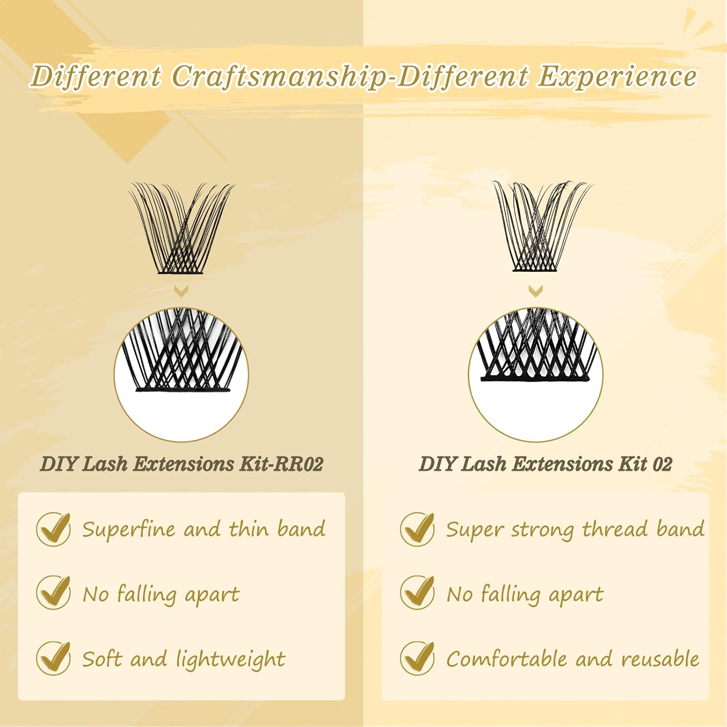 - Refuse Falling Apart With QUEWEL Cluster Lashes: Compared with other lash clusters, our lash clusters band is stronger and thinner. So you will feel easier and more comfortable when using the DIY cluster lashes. Easy to pick up without falling apart, soft and comfortable to wear