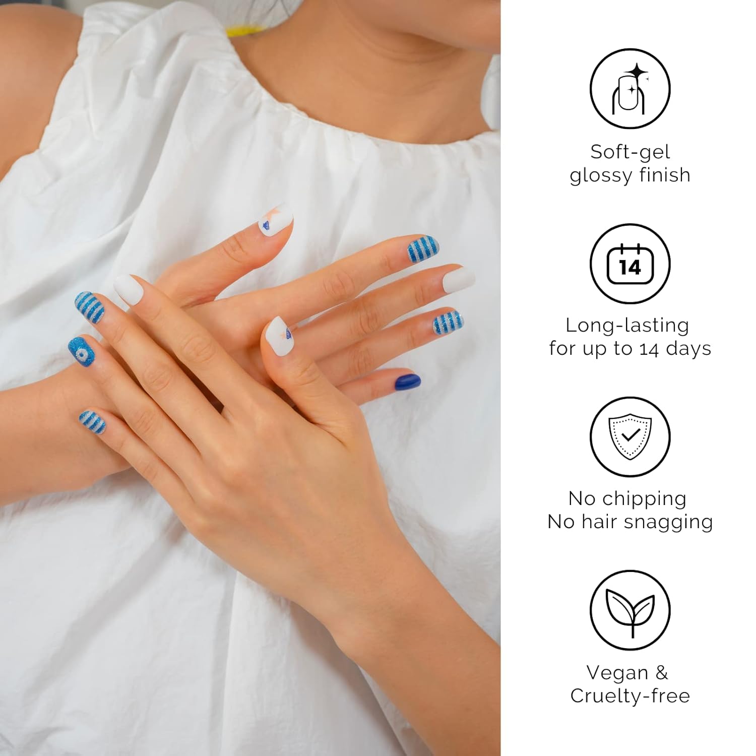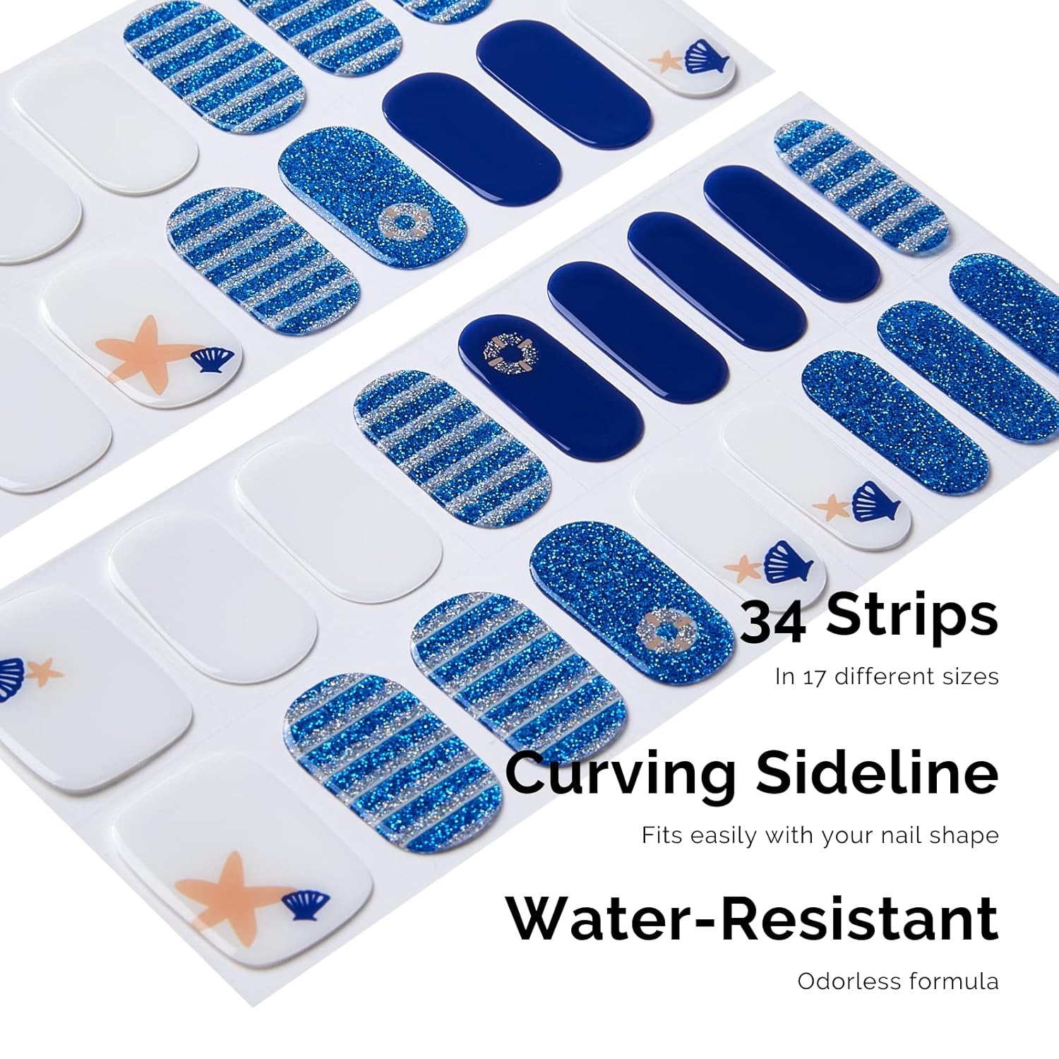 NAILOG Semi Cured Gel Nail Strips for Summer 34 pcs, Buy 2 Get 1 UV Lamp, Salon-Quality Nail Strips with Soft Gel Finish | Marine Story