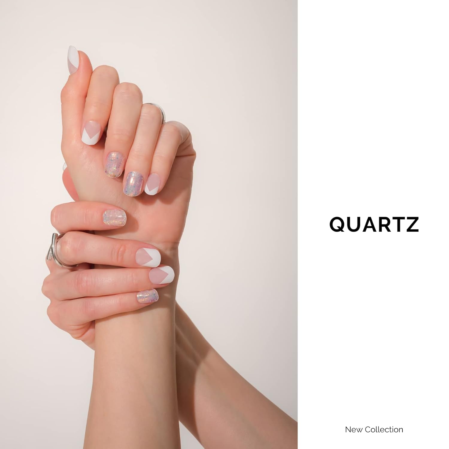 NAILOG Semi Cured Gel Nail Strips 34 pcs, Buy 2 Get 1 UV Lamp, Salon-Quality Gel Nail Stickers, Semicured Nail Wraps with Soft Gel Finish | Quartz