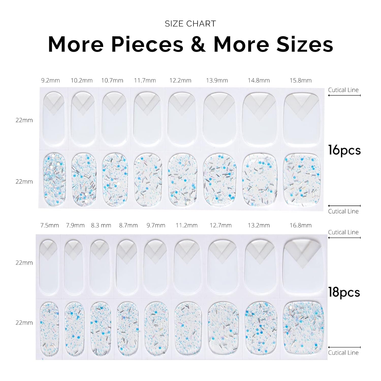 - ă34 PCS NAIL STRIPSăMore Quantity & Sizes than Ever! - With 17 different sizes of our nail art stickers, you can easily find the right size to match your nails. - New curved side line fits even better with your nail shape for seamless adhesion.