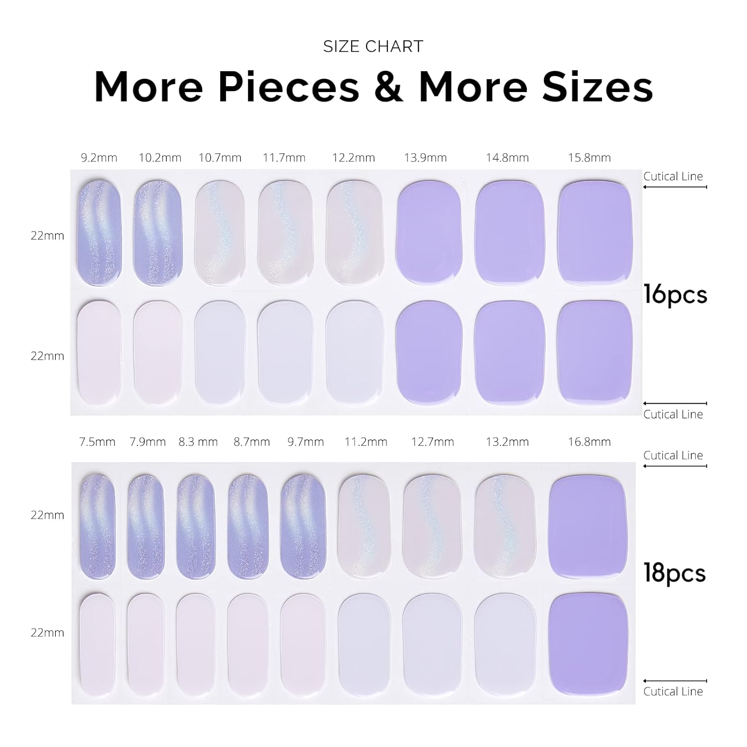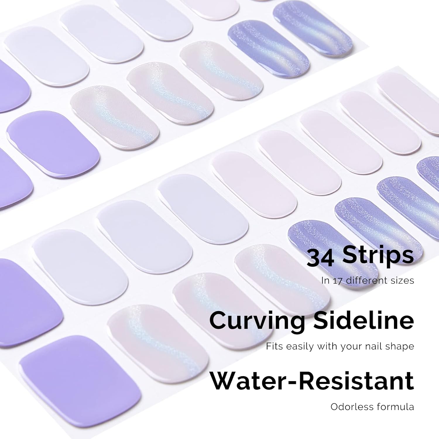 NAILOG Semi Cured Gel Nail Strips 34 pcs, Buy 2 Get 1 UV Lamp, Salon-Quality Gel Nail Stickers, Semicured Nail Wraps with Soft Gel Finish | Lavender Mist