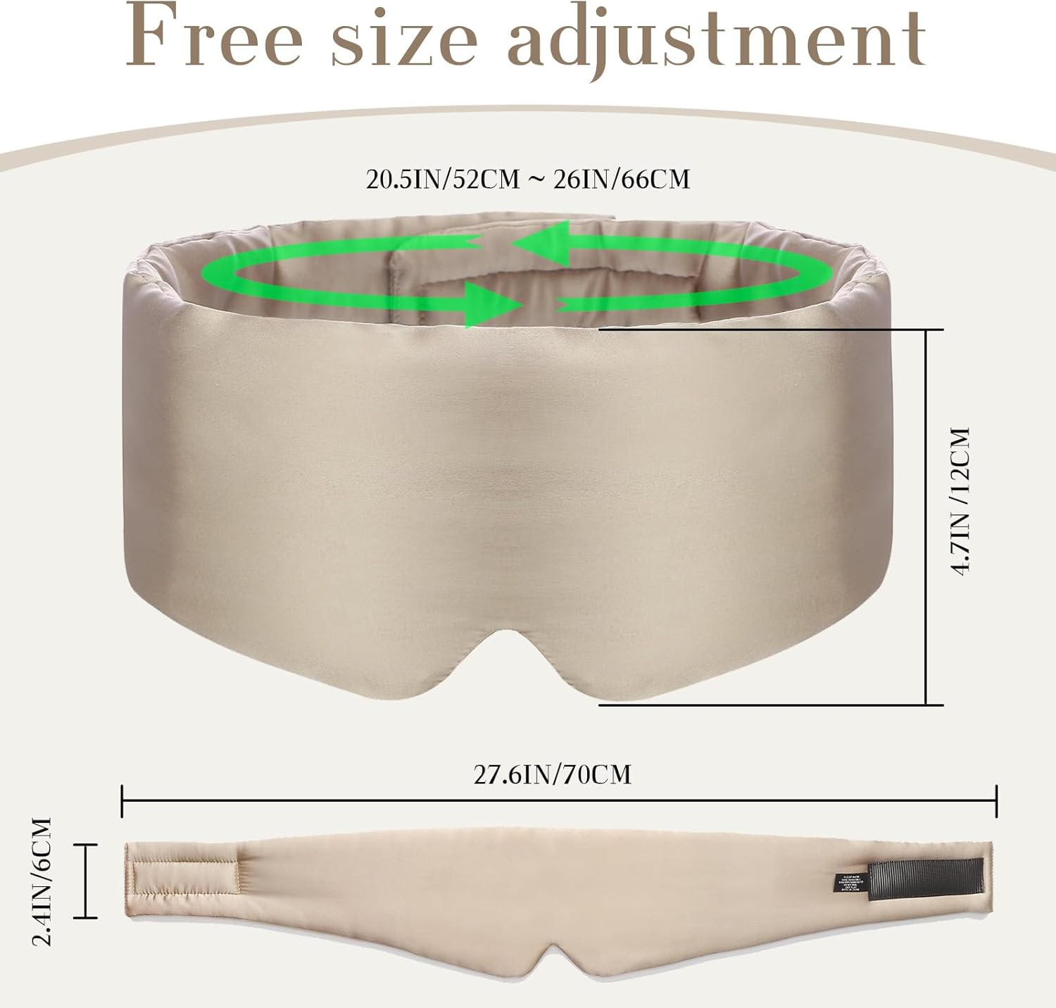 100% Mulberry Silk Sleep Mask Eye Mask for Women Man with Adjustable Band, for Side Sleeper Blackout Sleep Mask for Travel Rest and Office Large Size (Taupe)