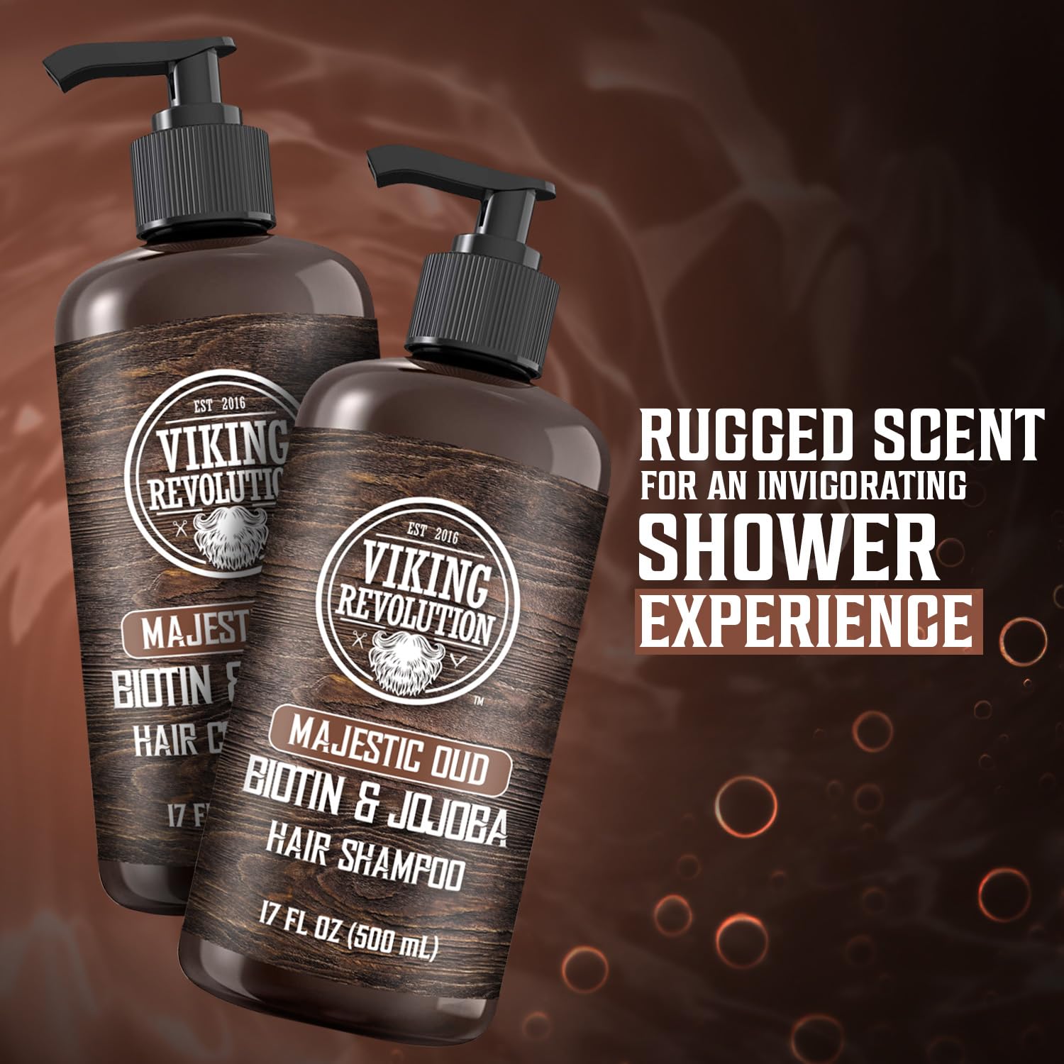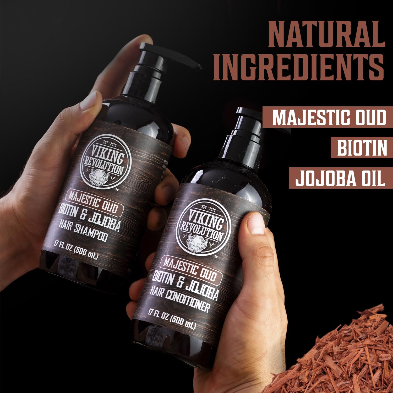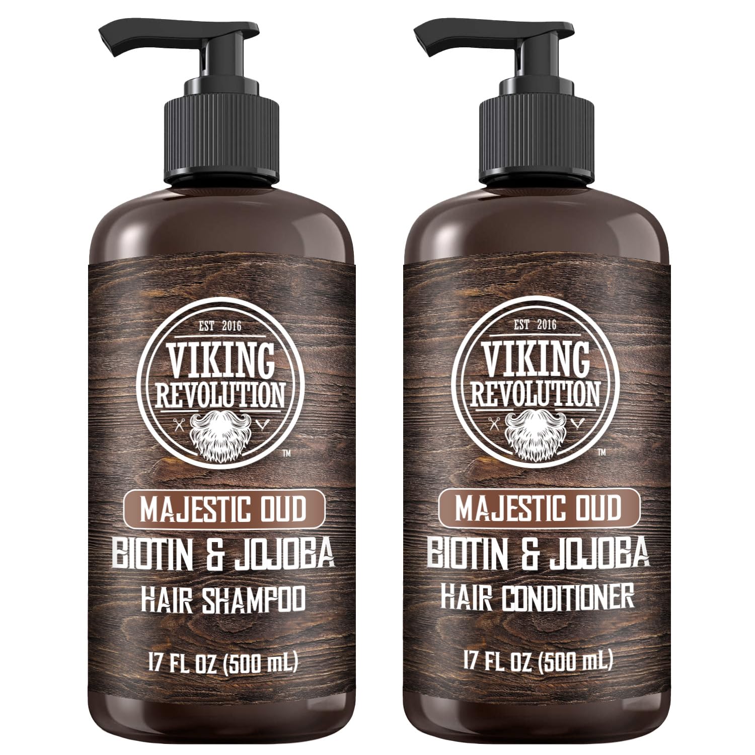 Viking Revolution Majestic Oud Mens Shampoo and Conditioner Set with Biotin and Jojoba Oil - Natural Hair Shampoo and Hair Conditioner for Men with Vitamin B5 - Mens Shampoo for Thinning Hair (17Oz)
