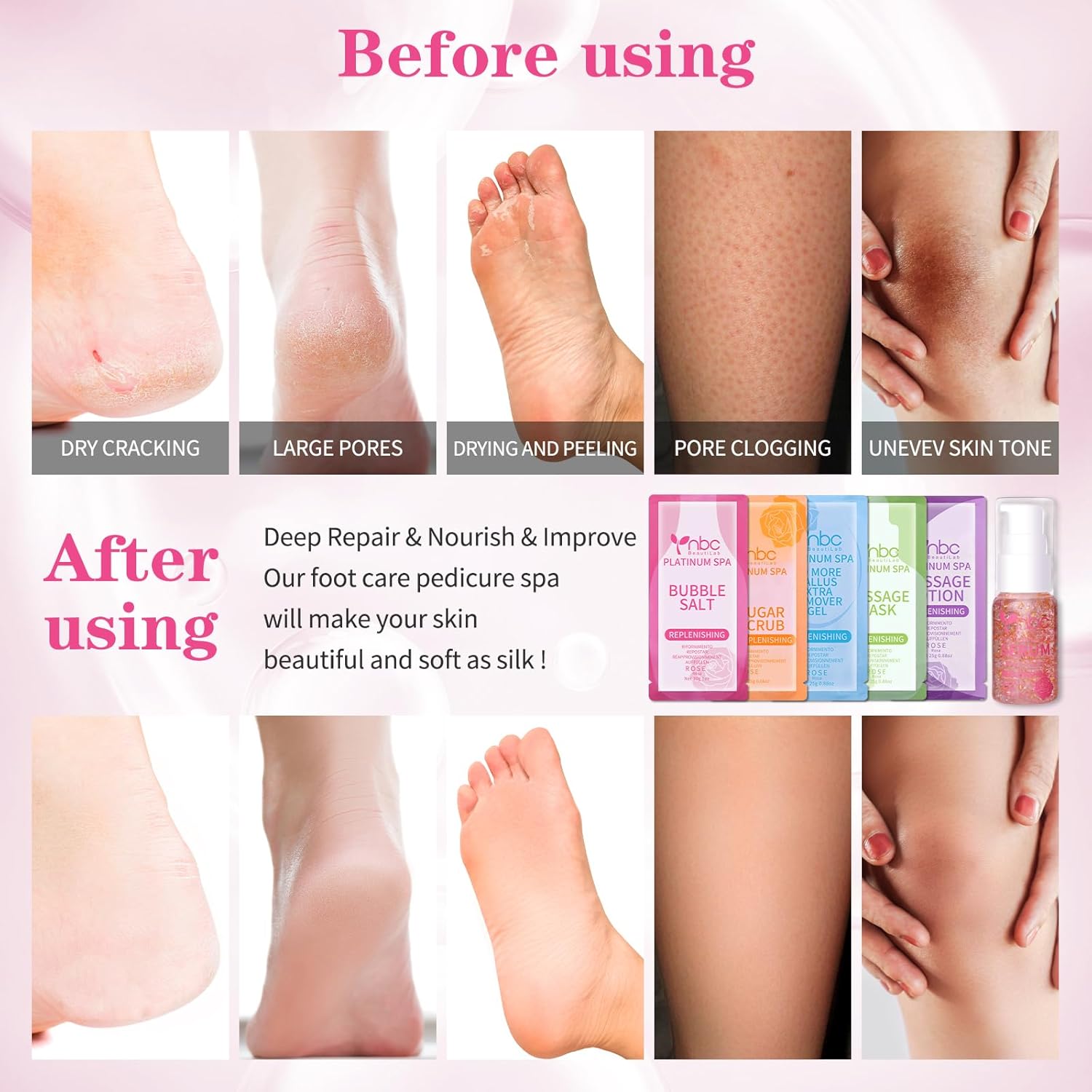 - āØ[6 Treatments] Our deluxe pedicure spa kit consists of 6 product treatments which can accelerate to restore the smooth skin of your feet. The serum in it can be used multiple times.
