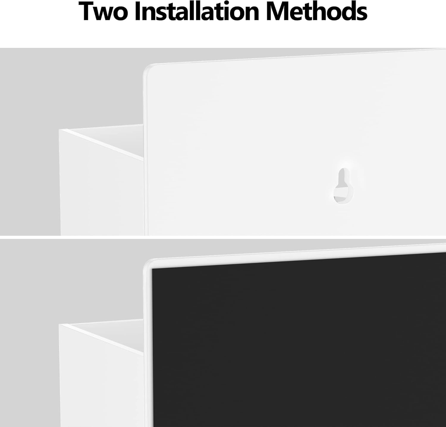 - PATENT PENDING: 𝗣𝗔𝗧𝗘𝗡𝗧 𝗣𝗘𝗡𝗗𝗜𝗡𝗚.This 2-tier design ( Patent Pending ) can ensure that the holes in the bottom tray are just right for holding the tips of standard dry erase markers in place. If you don't want to install it on the wall, it can also be placed on the table top.