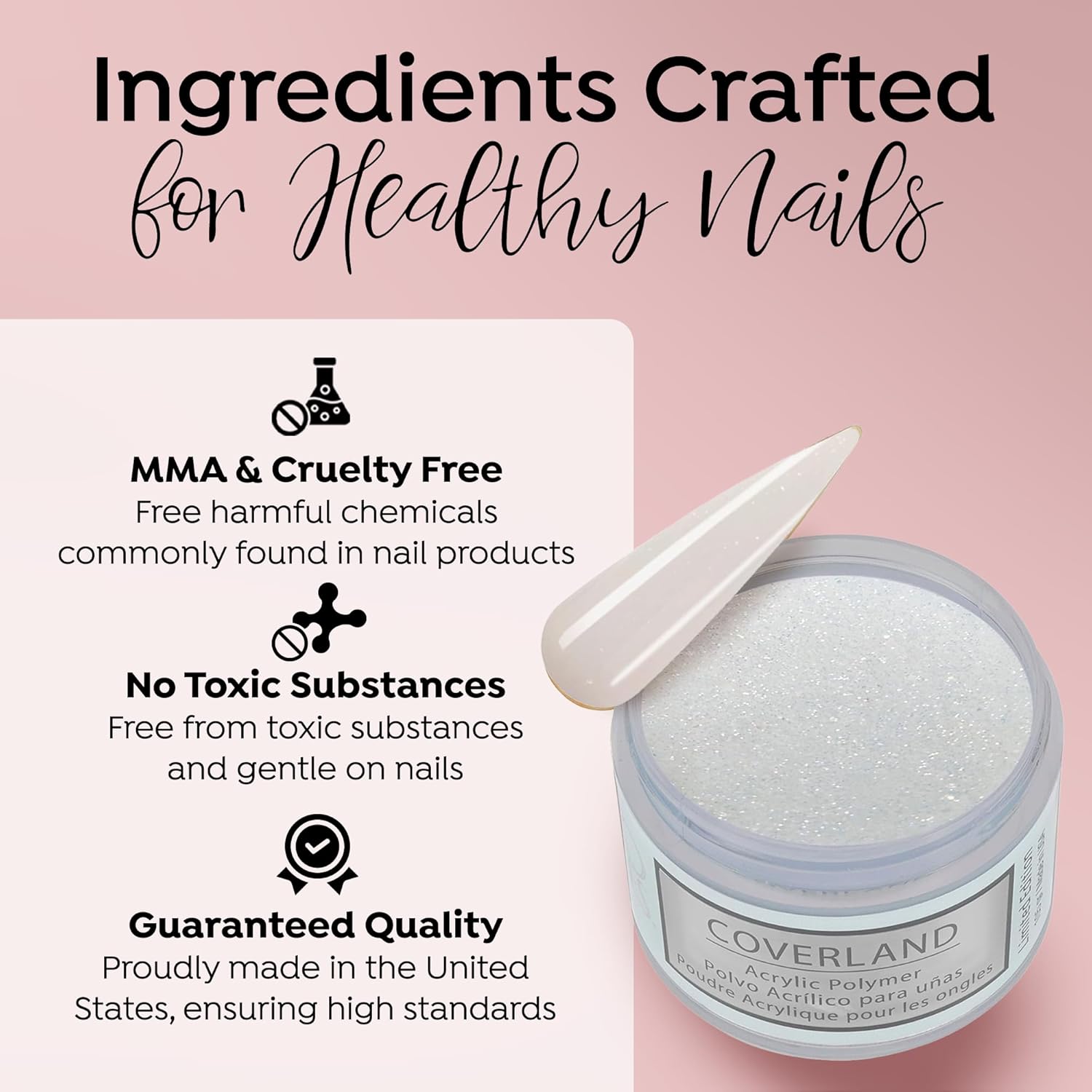 - βοΈππππ ππππππππ πππππ: The flexibility and adhesion properties of Coverland colored acrylic nail powder make it easy to shape nails with precision, and offers nice control for professionals who prefer to work with a polymerization rate of moderate to fast.
