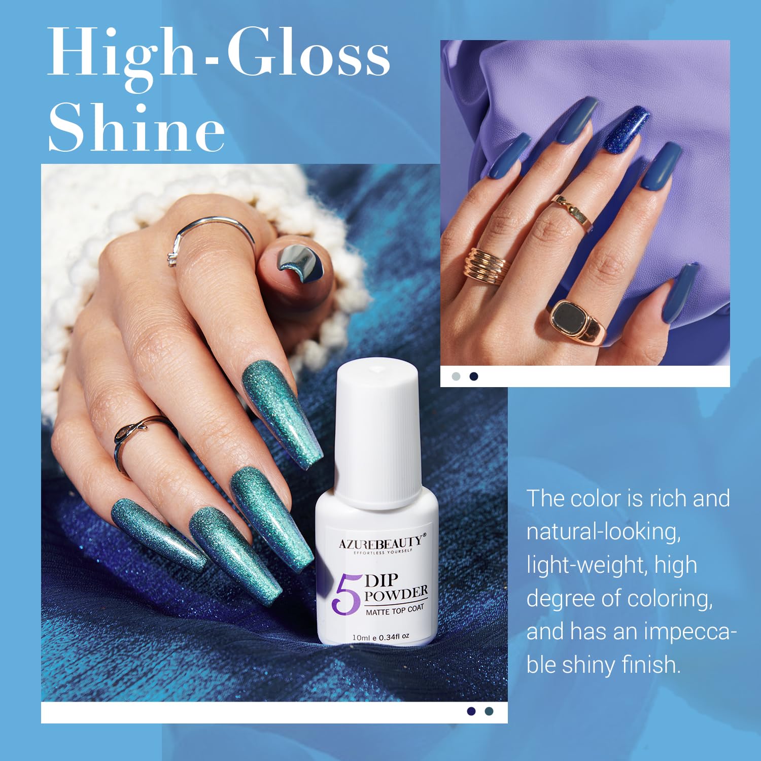 - 【No Need Nail Dryers & Easy to Use】AZUREBEAUTY dip powder nail kit doesn't need a nail lamp to cure, dry faster, and be skin-friendly, which can avoid turning skin black and damaging nails. Create your beautiful nails with a 3-step dip liquid set, an ideal choice for professional manicurists and nail beginners who enjoy the fun of DIY nails.
