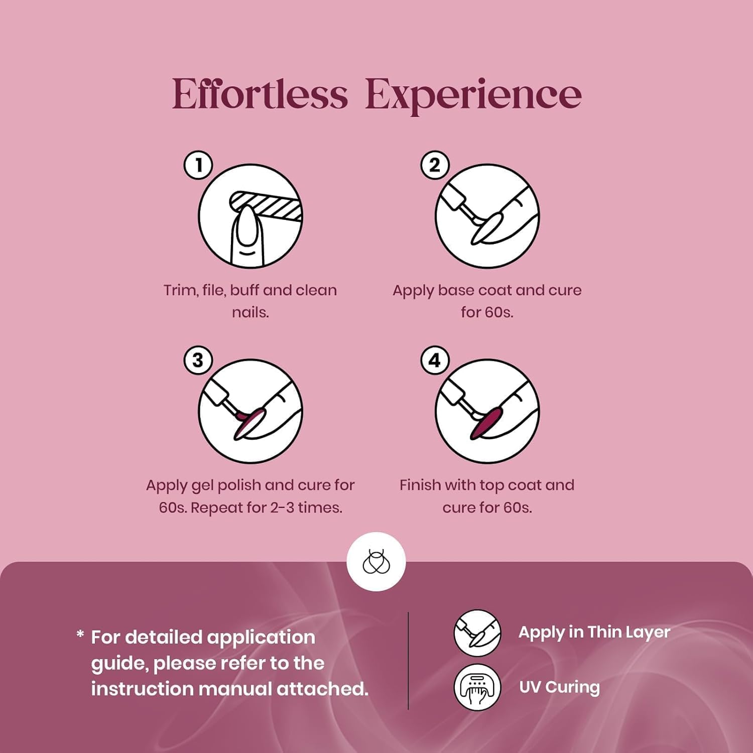 - Durability and Easy Application:Beetles purple gel nail polish kit with highly pigmented and tenacious gel material provides a brilliant shine finish, smooth appearance, and flawless coverage. Soak-off gel nail polish requires base and top coats and cures in just 60-120 seconds under UV nail lamp, which can last for more than 28 days. Use Beetles UV Nail Lamp, Get Better Effect