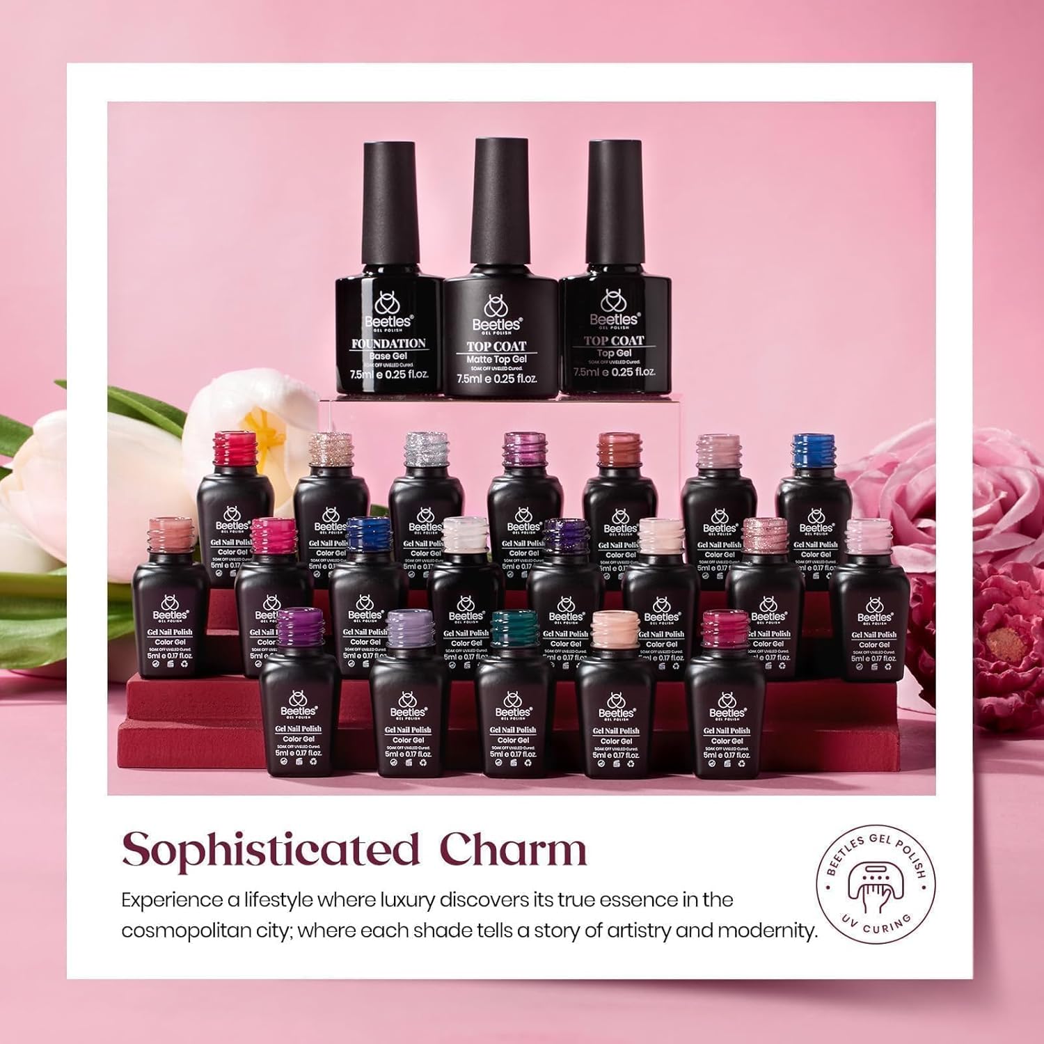 - Included Components : Beetles UV Nail Lamp, Base Matte Top Coat, Glossy Top Coat