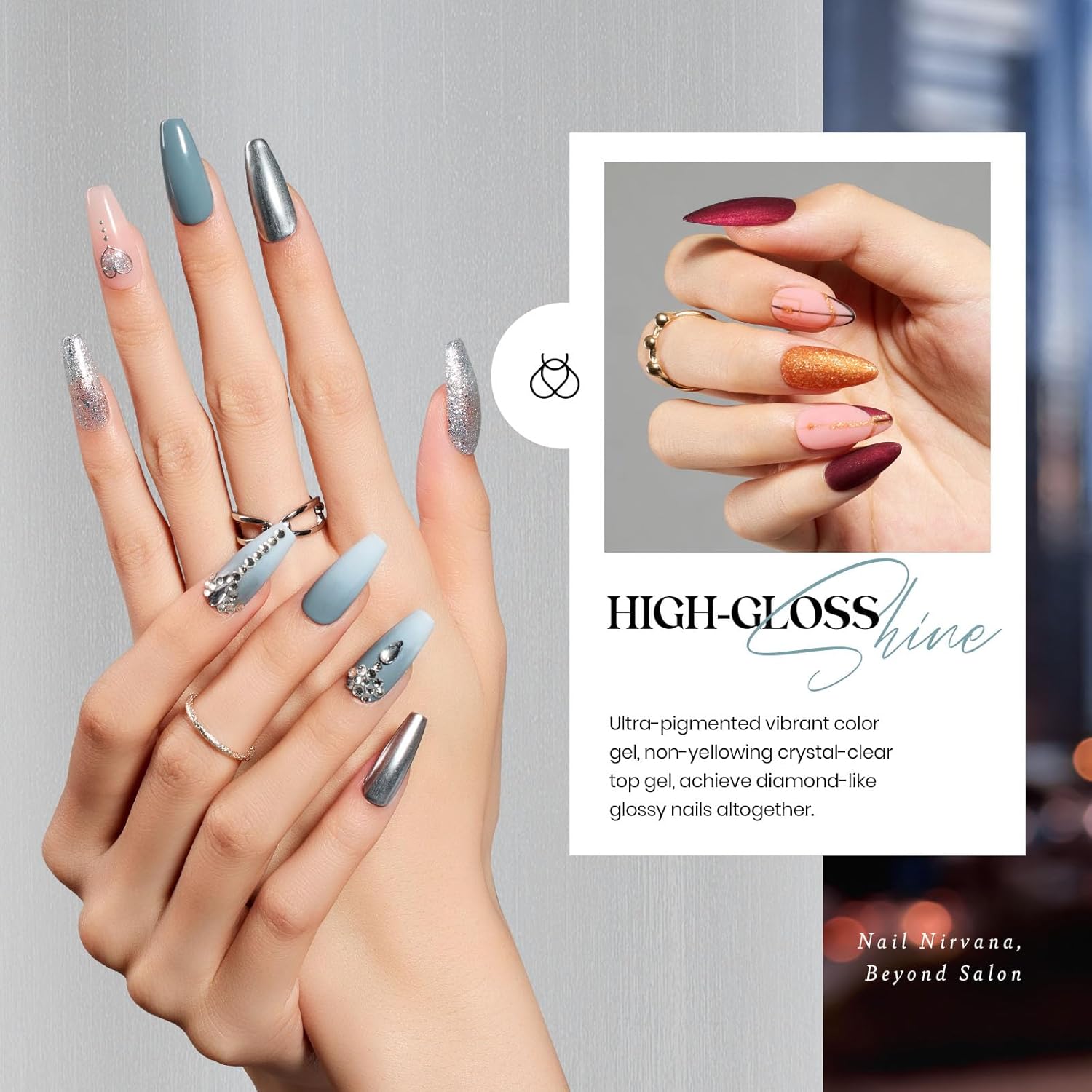 - 【Speed Curing with LED Nail Lamp】: The black white nude pink gray red gold green brown blue glitter gel nail polish kit needs to be cured under LED/UV light.