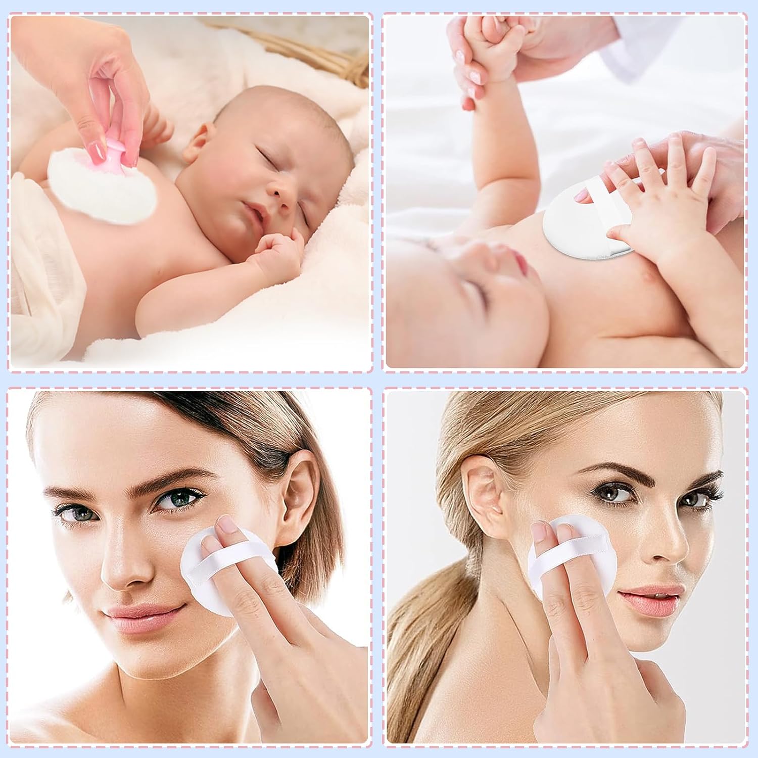 - 【2 Body Powder Puffs】: Considering the daily needs of our customers, our body powder container is equipped with 2 body powder puffs which made of delicate and smooth touch artificial wool,odorless, individually packaged. The large powder puff with a handle can directly take an appropriate powder apply for body, fast and convenient! The small puff (2.28 ") can take a small amount of powder more delicate and apply evenly on baby skin.