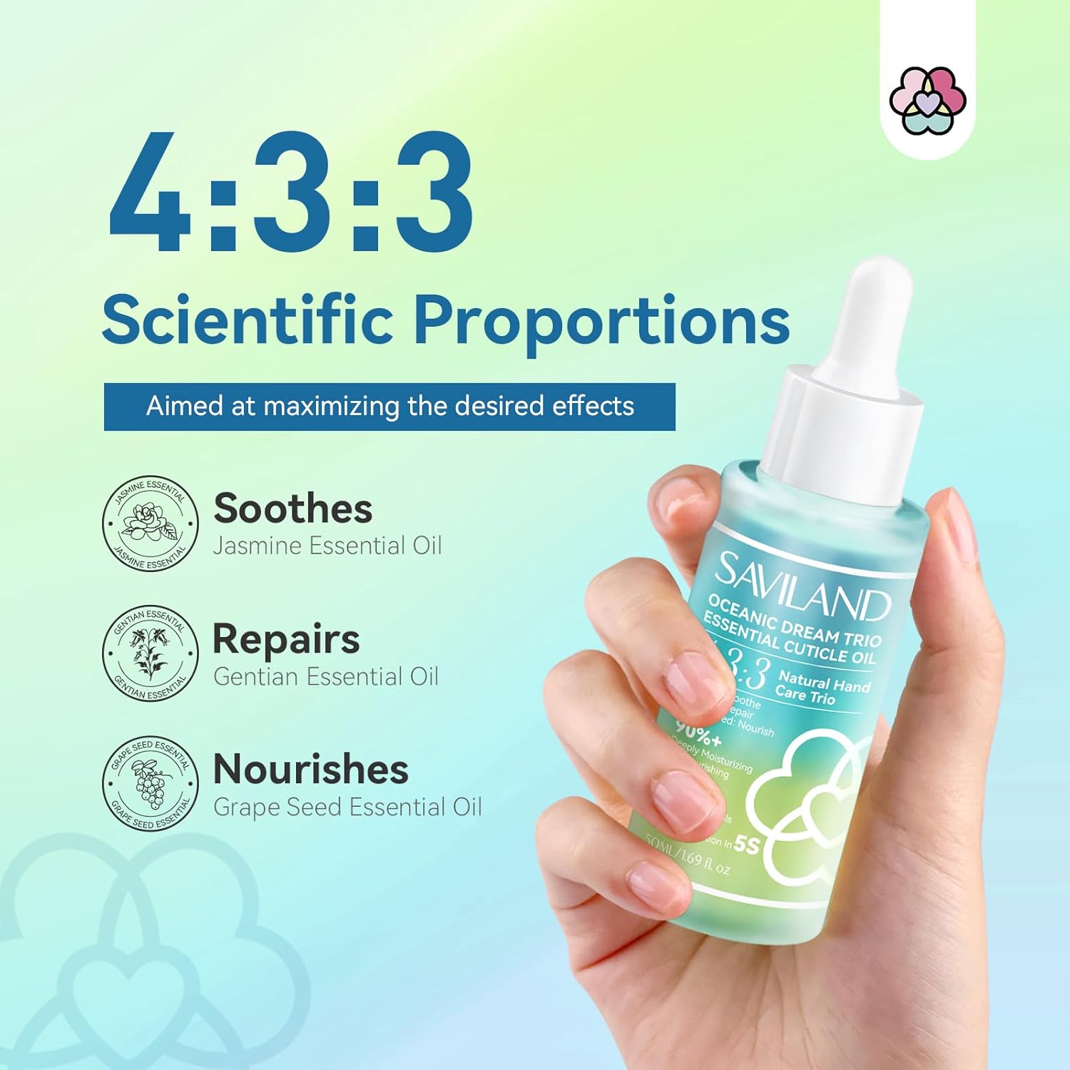 SAVILAND Cuticle Oil Triple Essential: 50ml Vitamin E & C Jasmine Gentian Grapeseed Nail Growth Oil Ultra Repair Nourish Soothe Cuticle Oil For Nails Plant-based Strengthener For Weak Nail
