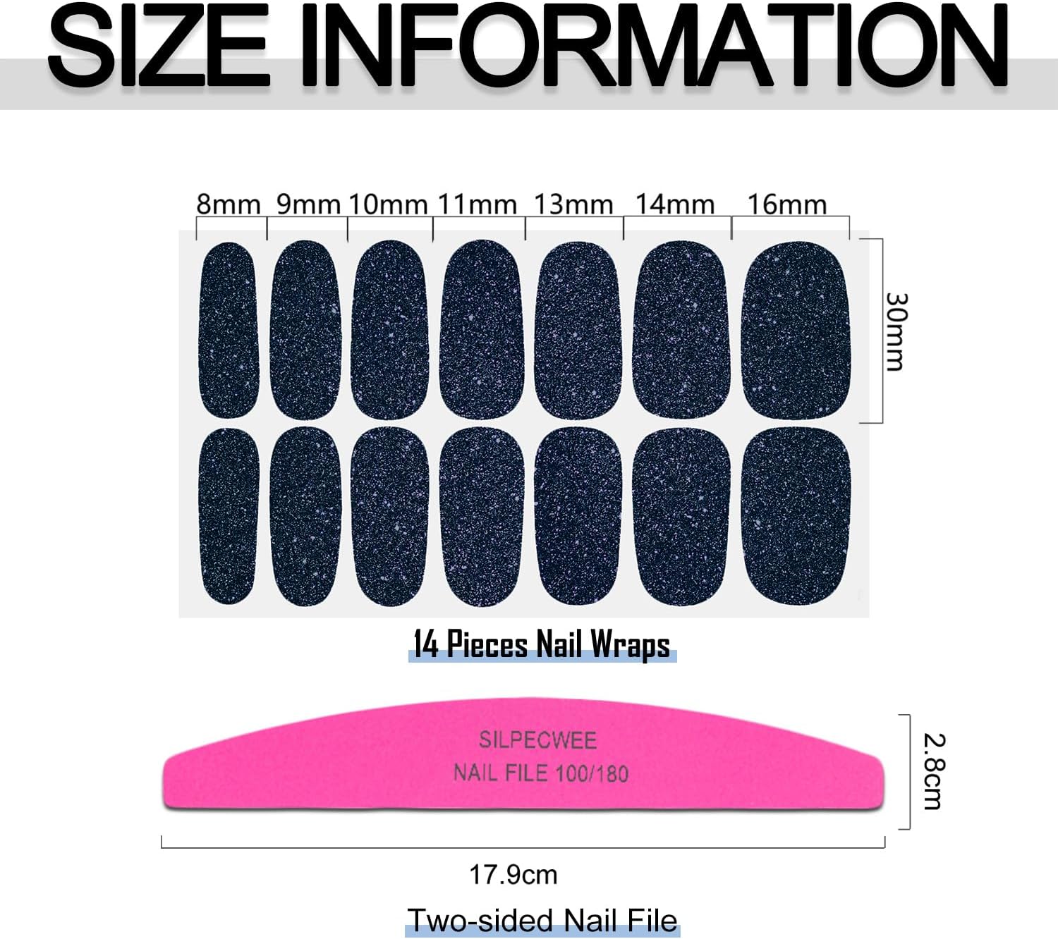 SILPECWEE 16 Sheets Blue Nail Wraps for Women Glitter Solid Color Nail Polish Stickers Stick on Nail Polish Strips Gel Nail Strips Self Adhesive Fingernail Manicure Design with Nail File