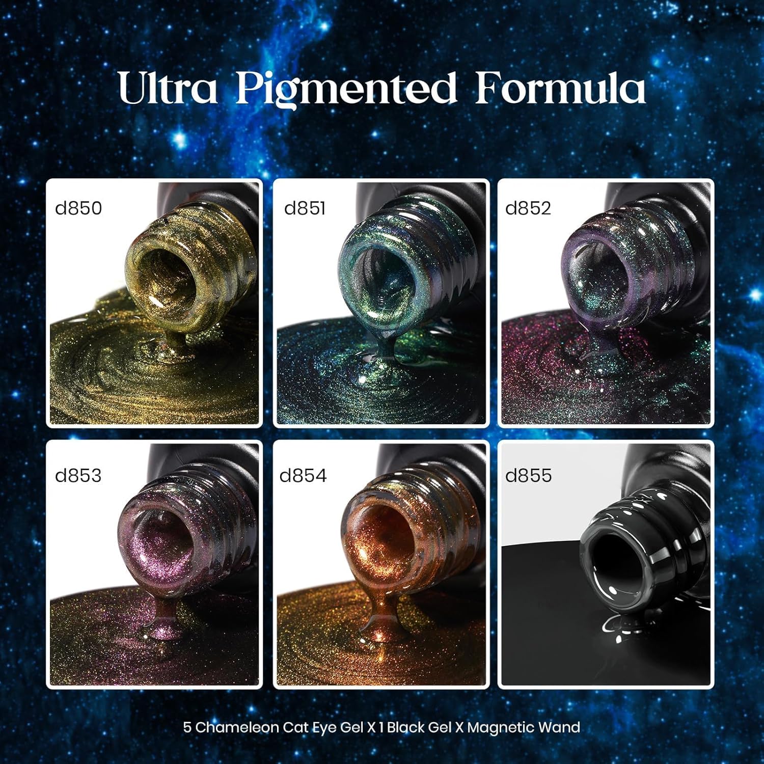 - Included Components : 6 colored gel polishes, 5 special cat eye gels, 1 black gel polish, Base & Top Coat not included