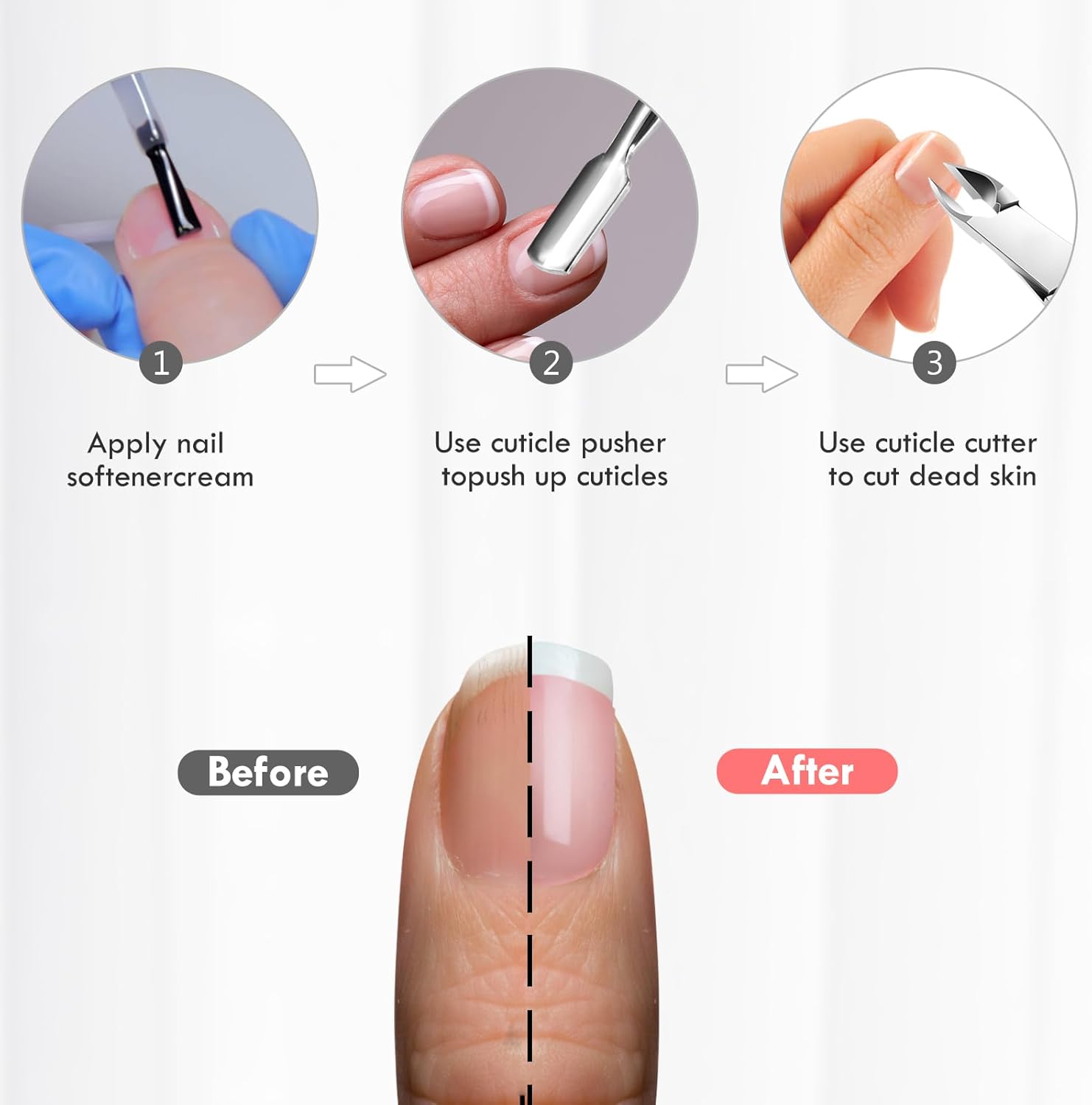 - Upgraded Polished Stainless Steel Materal -- The cuticle trimmer and cuticle pusher cutter are made of polished stainless steel, Which makes them sharper, more efficient and durable, easy to clean. They will give you a nice experience for a long time.