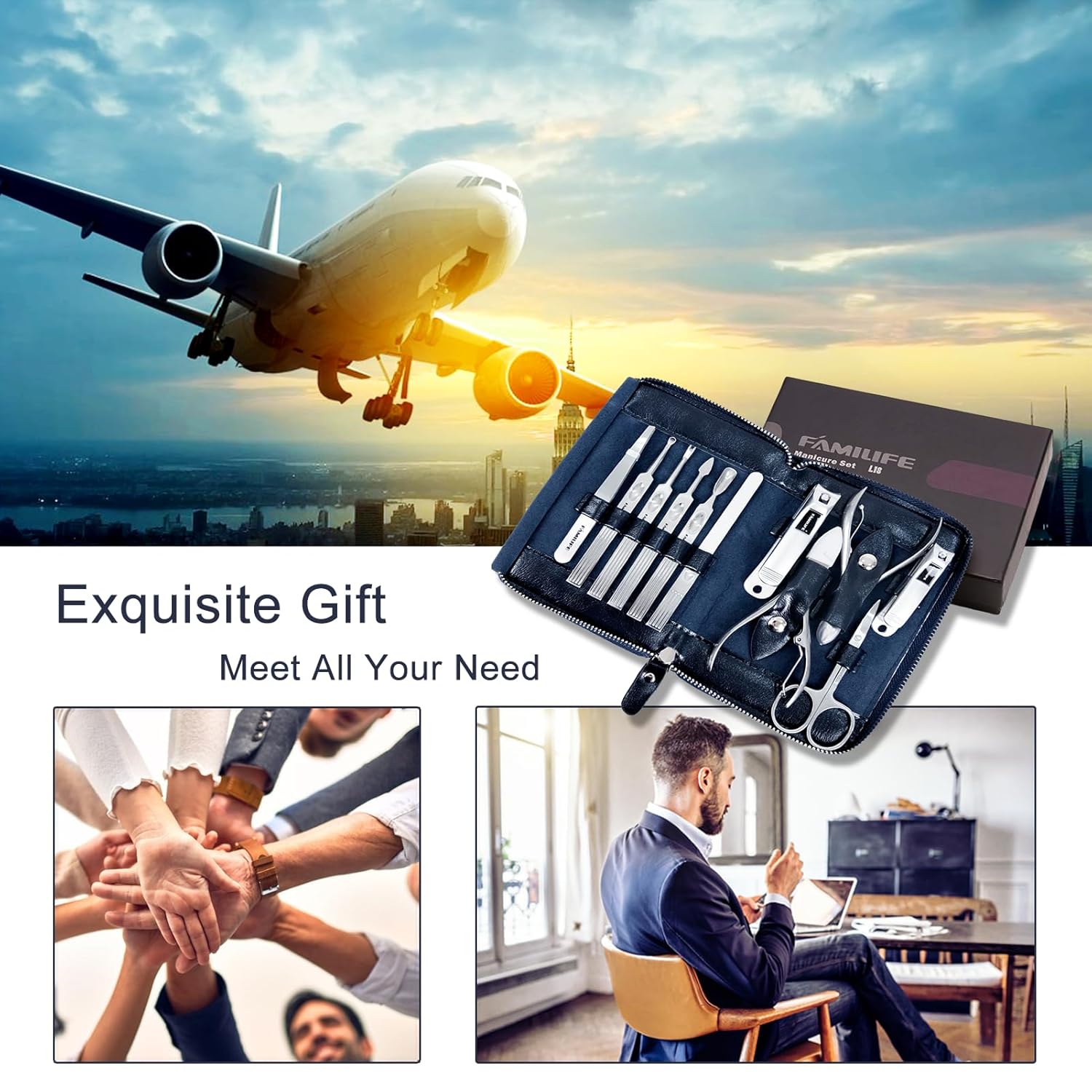 - 【Cloth To Protect Grooming Tools】 The package of FAMILIFE manicure set has a beautiful design and protects the tools well. It is made of PU leather; each tool has a fixed slot to keep the tools in order; a piece of cloth is in the middle, the tools will not rub against each other when the packaging is closed.