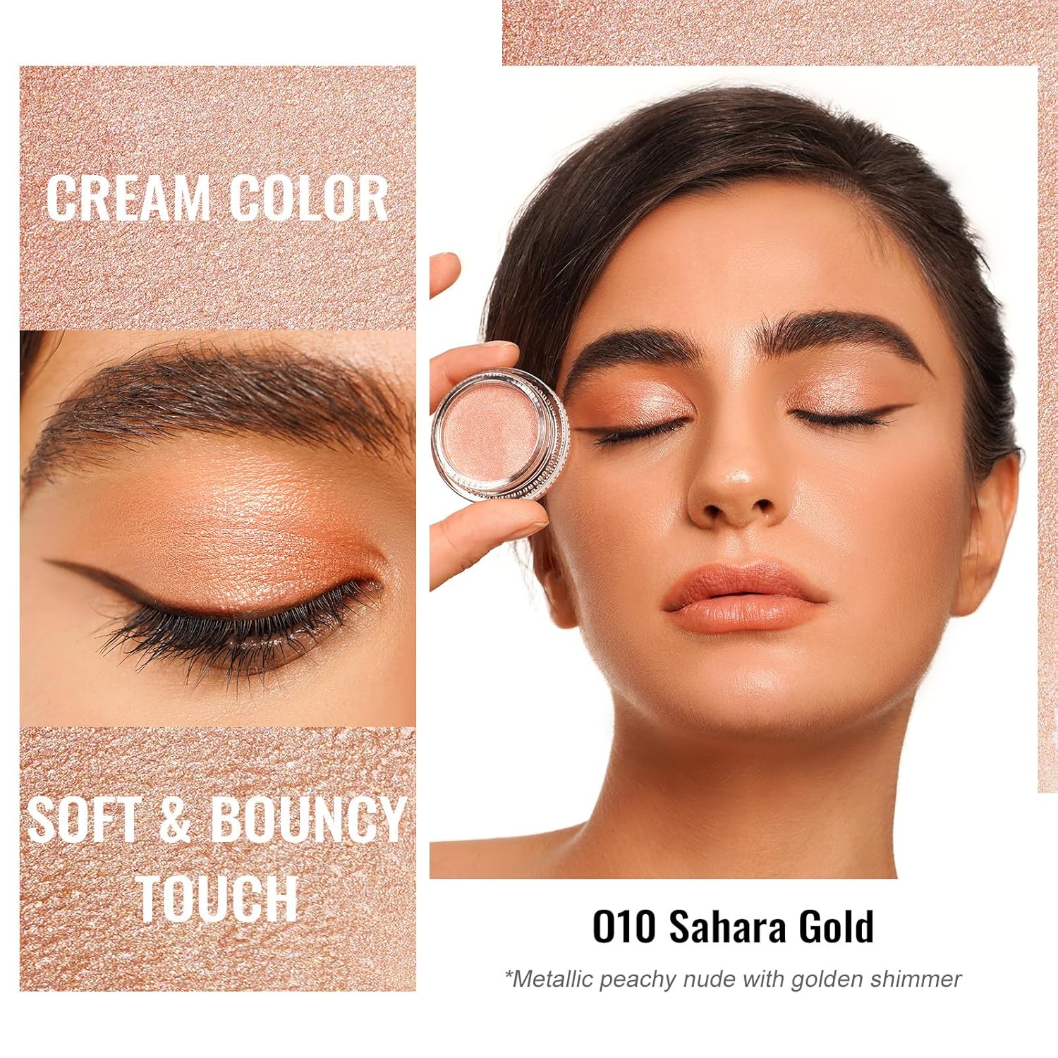 Oulac Nude Gold Cream Eyeshadow also for Highlighter Highly Pigmented Eye Shadow Waterproof&Long Lasting with Moisturizing Formula Blendable Shimmer Eye Make-up,Vegan & Cruelty-Free, 6g O10