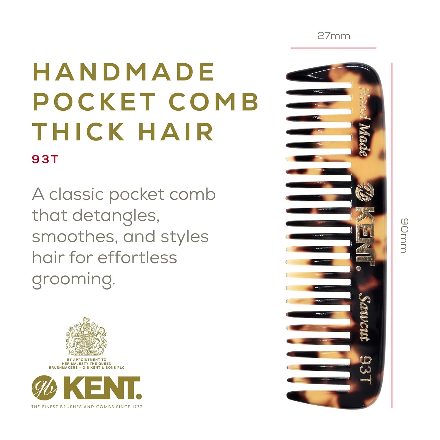 - This mens comb is a premium Kent comb, known for its durability, comfort and professional quality. The wide teeth glide through hair, detangling and styling with ease. It's the perfect addition to any men's grooming kit or beard kit for men.