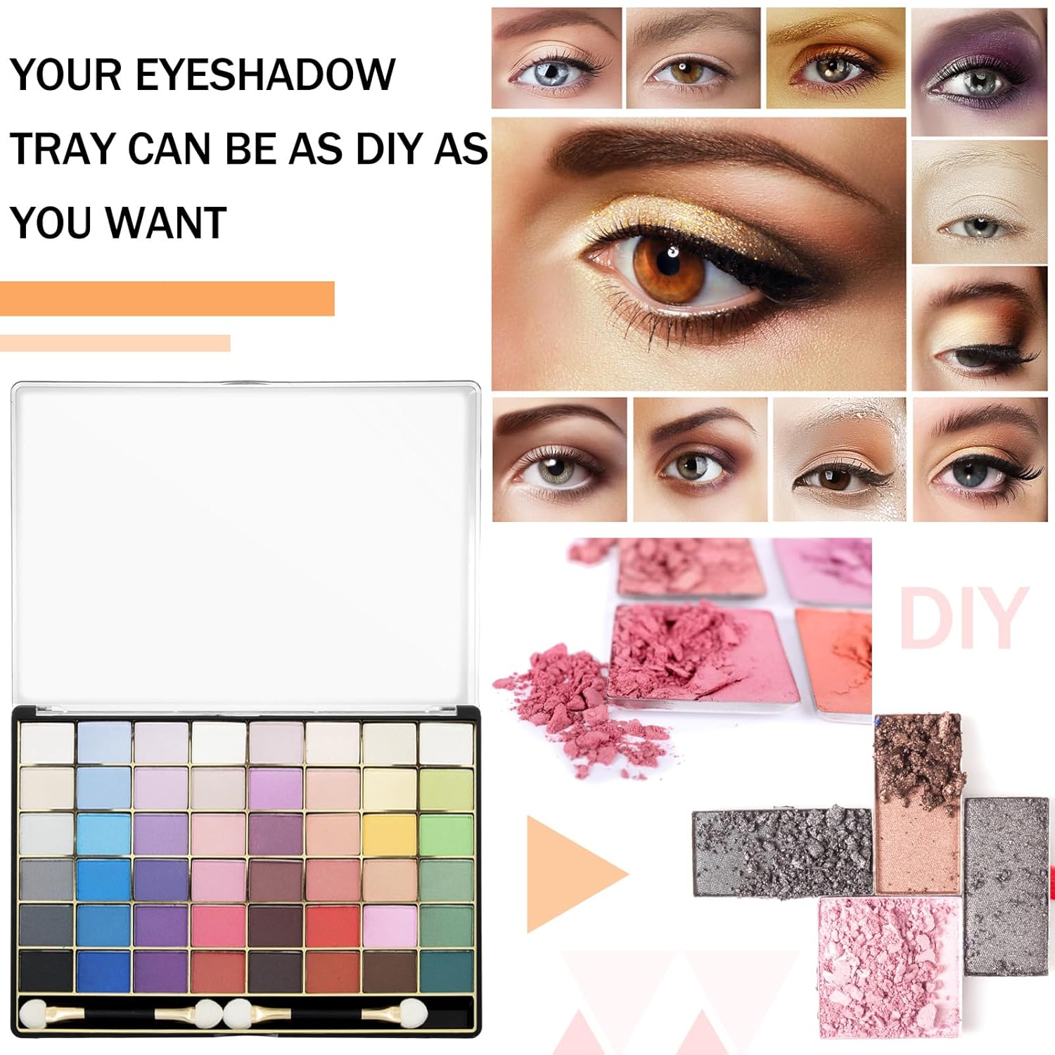 - Engaging Fun of DIY: show off your creativity and style by curating your custom color spectrum using this empty eyeshadow palette; Personalize your beauty collection and change the layout as you wish; It's a fun, interactive, and distinctive way of adding a dash of personal touch to your makeup kit