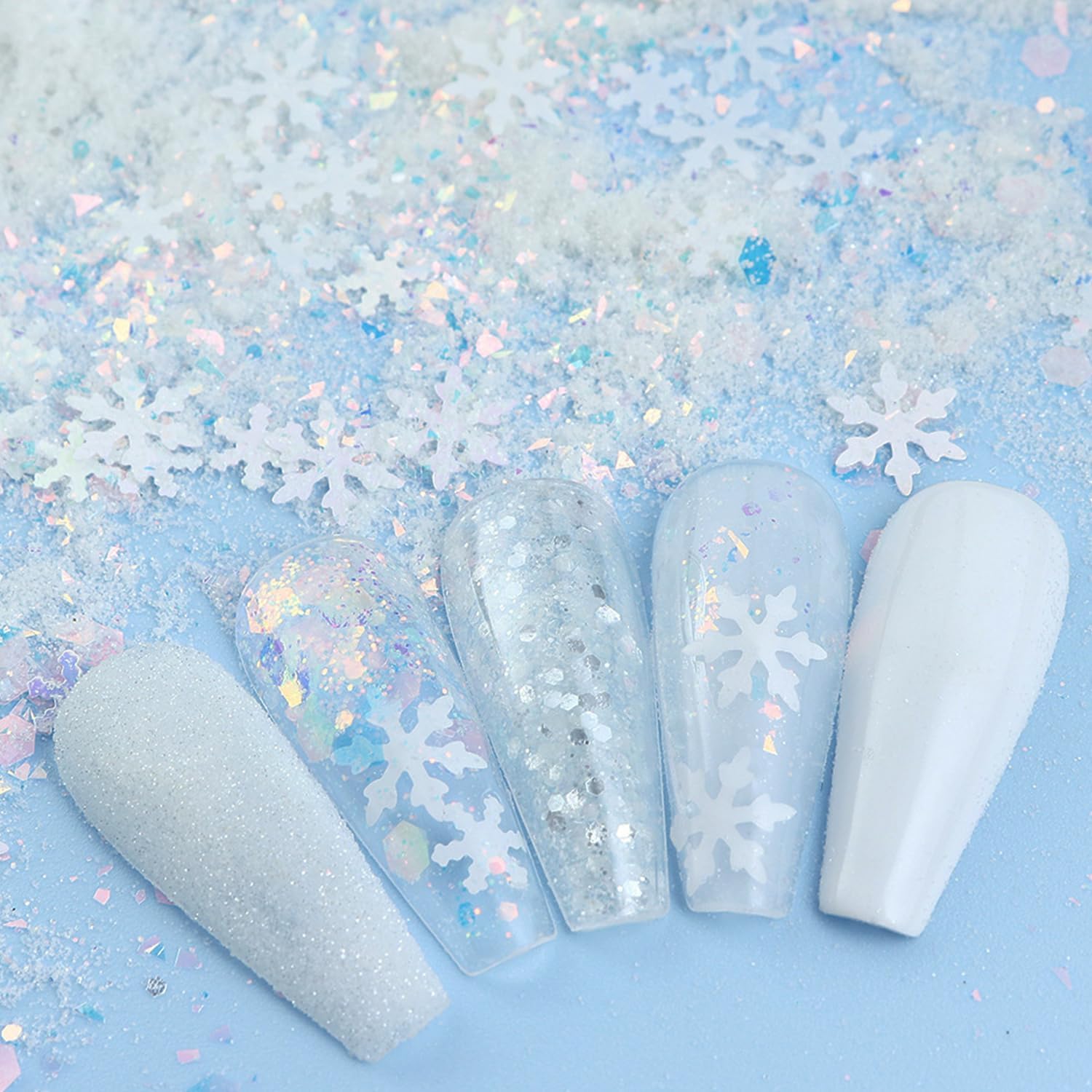 - 【Safe Material】-- The winter nail glitter sequins are made of high quality material, safe and skin-friendly, you can use it confidence. Acrylic powder can be used with both UV Gel Polish and normal nail polish.