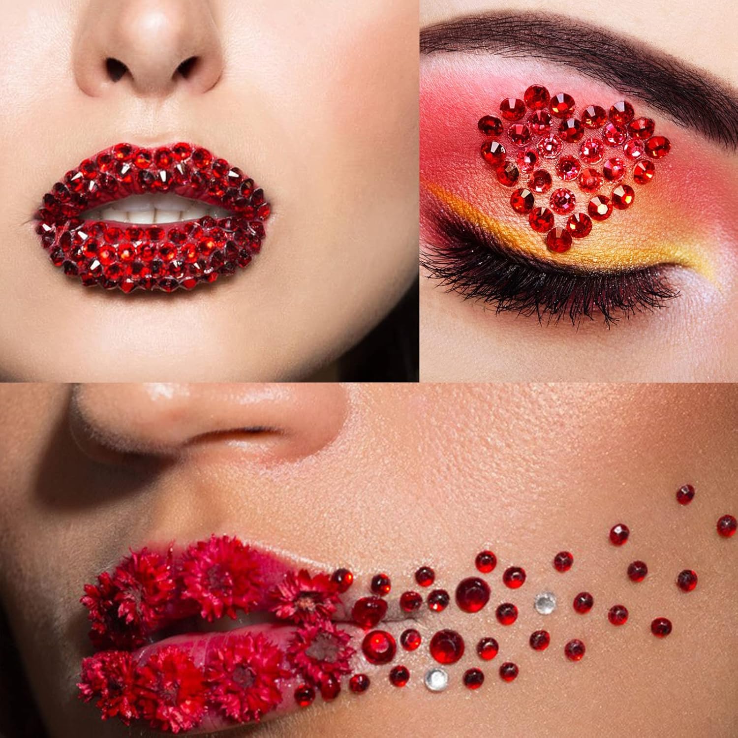 Canvalite 2784PCS Red Rhinestones Flat Back Gems, Nail Rhinestones Gems with 5Pcs Jewelry Glues, Pick Up Tweezers and Diamonds Picker Dotting Pen, Tools for Nail Art, Clothes, Face, Crafts