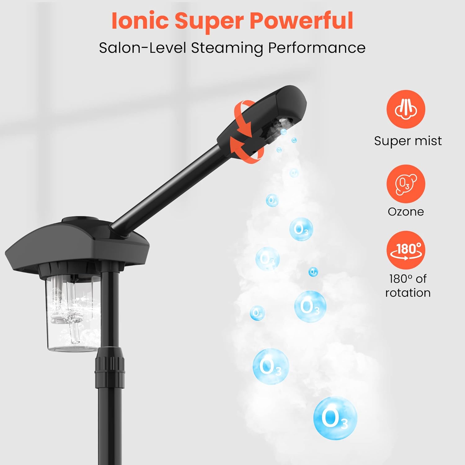 TASALON Ionic Facial Steamer, Professional Face Steamer for Facial, Esthetician Steamer for Face Spa and Salon Beauty, Hot Ionic Mist Face Steamer for Facial Deep Cleaning Skin Care Equipment- Black