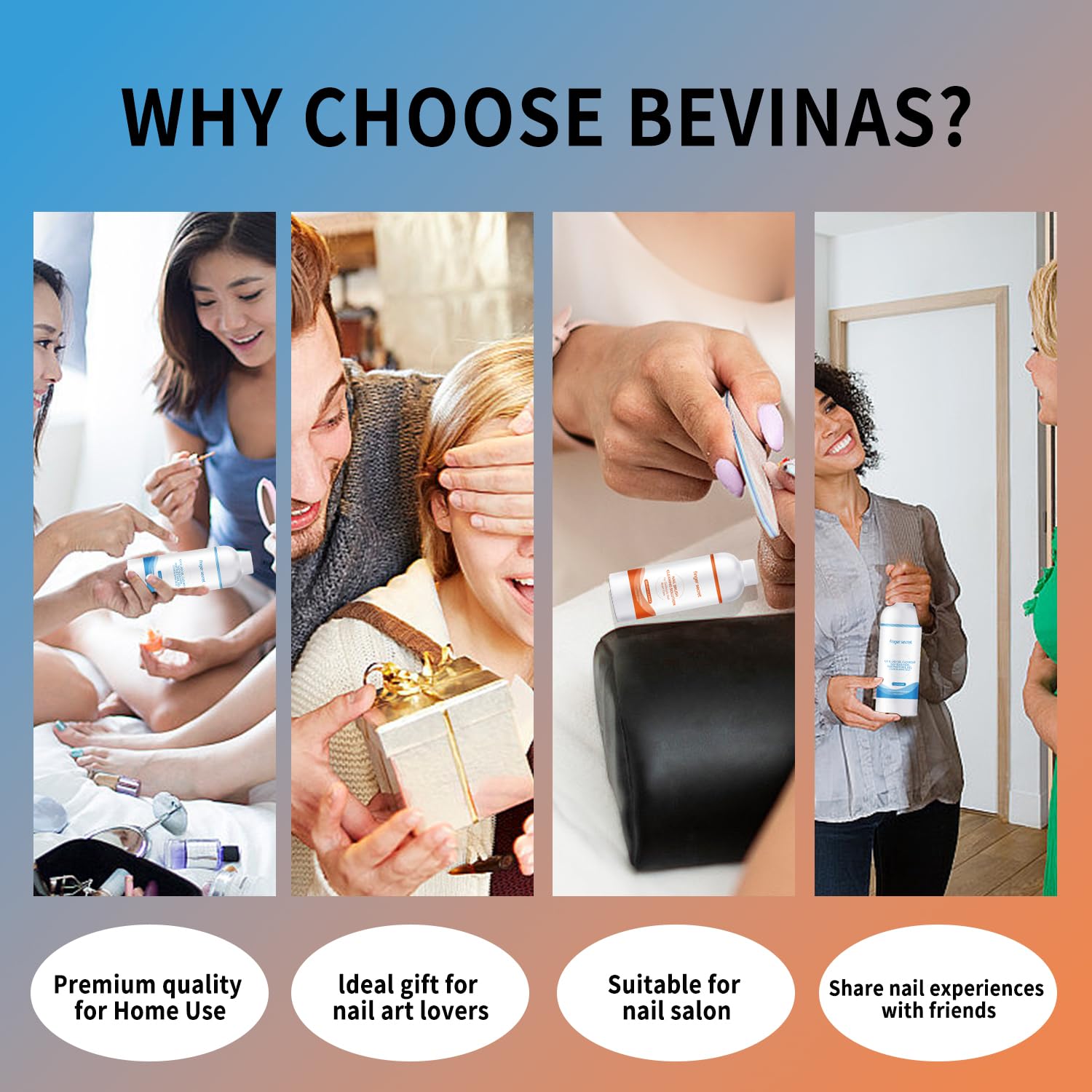- 【NATURAL FORMULA】BEVINAS slip solution and nail brush cleaner are made from natural ingredients with no added harmful substances. The slip solution is harmless to the nails and the body, has no irritating odor, and has been tested for safety and reliability. The nail brush cleaner also contains conditioning ingredients that prevent clumping, damage and blowing of bristles and increases the elasticity of nail brushes.