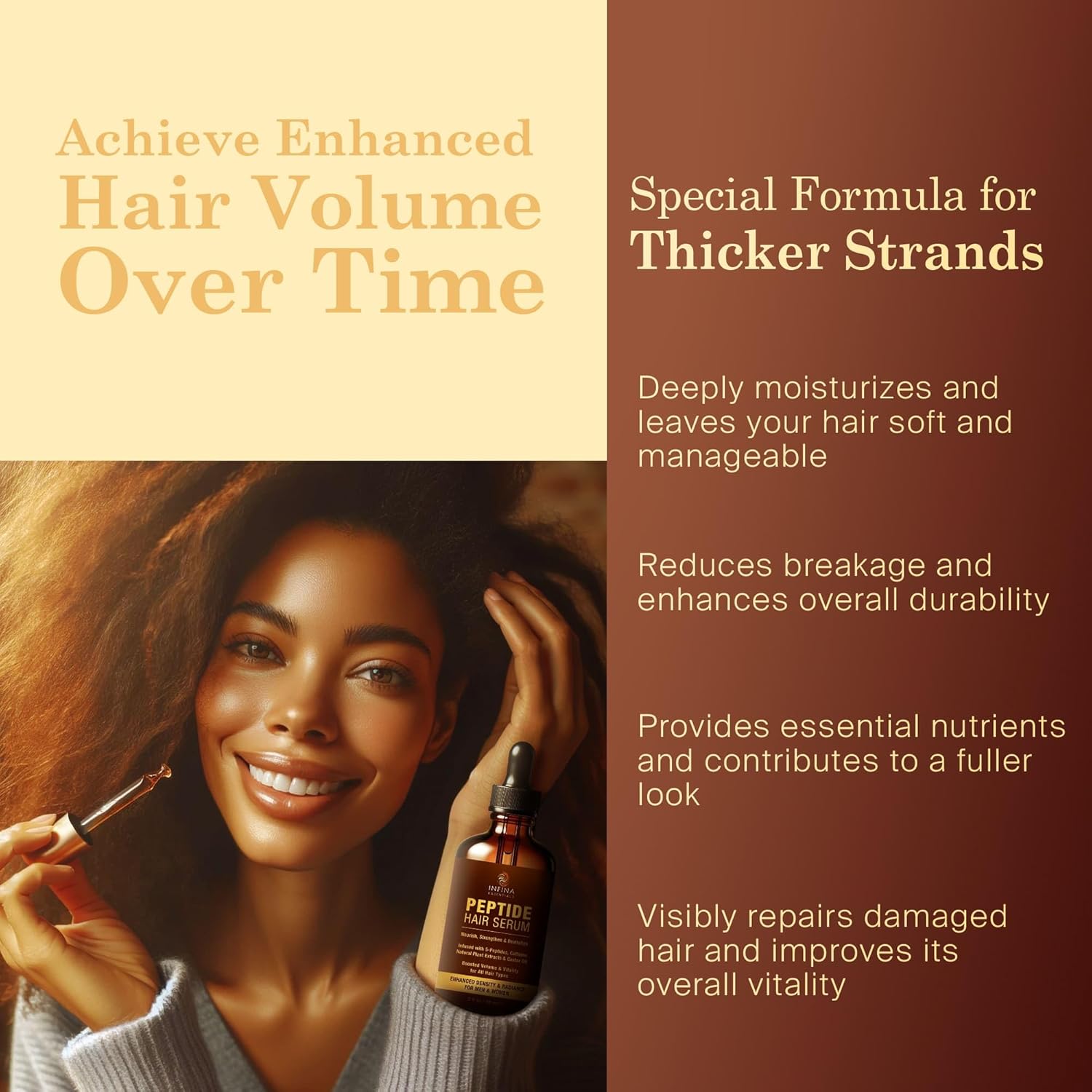 - Targeted Serum for Thinning Hair: Our hair thickening serum for thinning hair features biotinoyl tripeptide-1 and acetyl tetrapeptide-3, designed for nightly application as part of a consistent hair care routine.