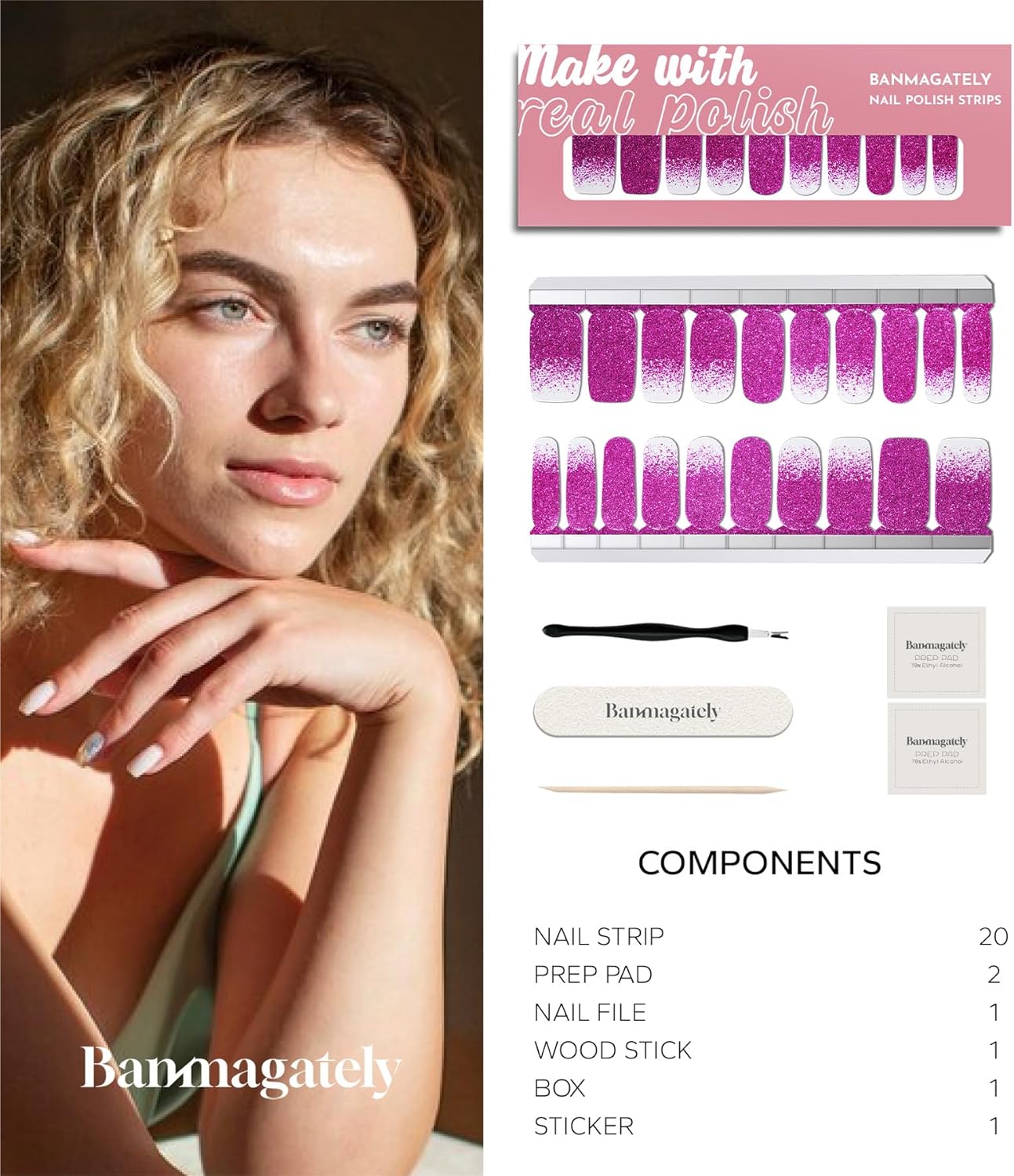 Nail Polish Strips, 20Pcs Salon Quality Gel Nail Stickers, Easy Long Lasting Wraps for Short Nails no UV Light Needed (Glitter Deep Purple)
