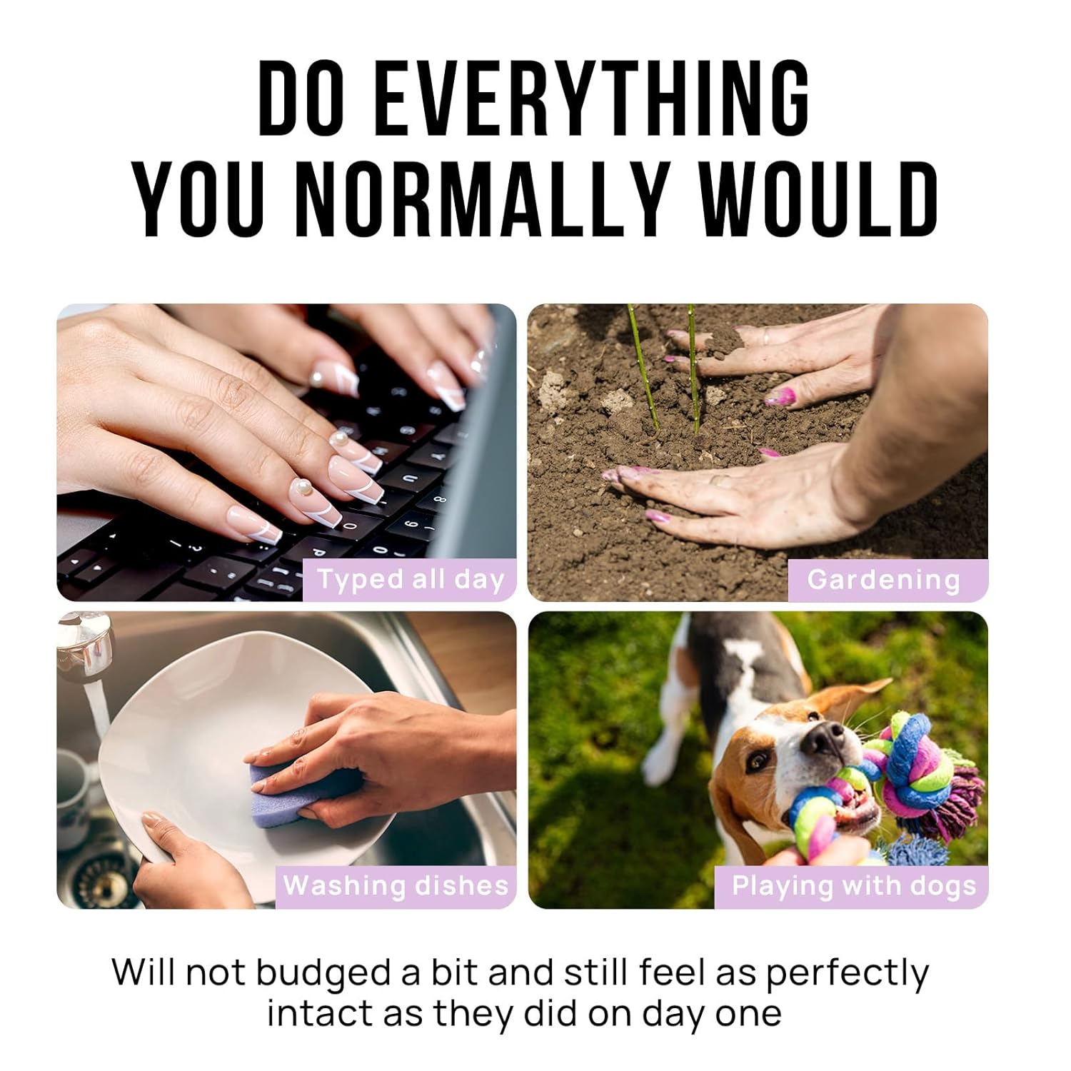 - Wear Them Weeks Straight or A Few Days - You Decide! If you want to get more than 14 days long lasting, we recommend using nail glue and adhesive tabs together. If you want to change the design weekly, only using glue is best choice. Adhesive tab is best for a date night or a little event. Meet all your differ needs. Please contact us for any product questions