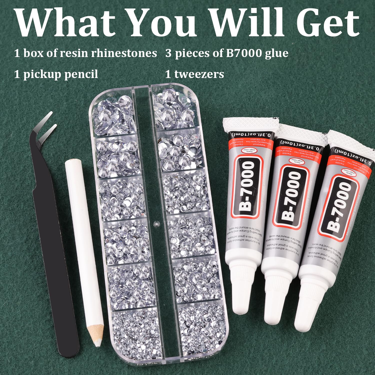 Resin Rhinestones for Crafting with B7000 Jewelry Glue, 1 Box Clear Flatback Crystals with 3Pcs 10ml Glue for Bedazzling Crafts DIY Nail Art Makeup,Non Hotfix Gems for Clothing Shoes