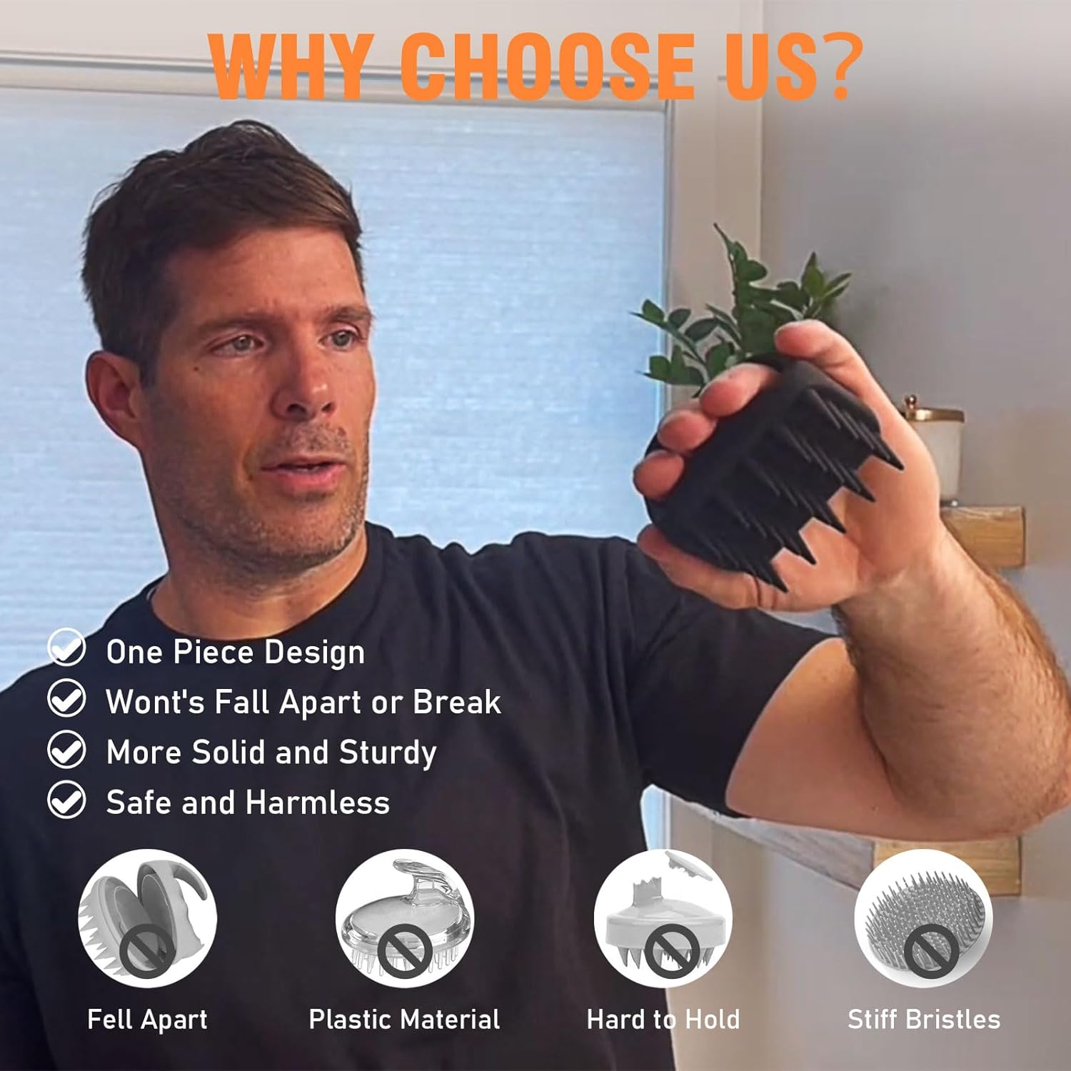 - DURABLE AND NON-SLIP DESIGN: Our scalp massager is made of 100% silicone in a one-piece design, enhancing durability and safety. It is long-lasting and has an ergonomic handle that fits comfortably in your hand, ensuring a stable grip even in the shower. Additionally, it is very hygienic and easy to clean, making it a great addition to any man's scalp care routine.