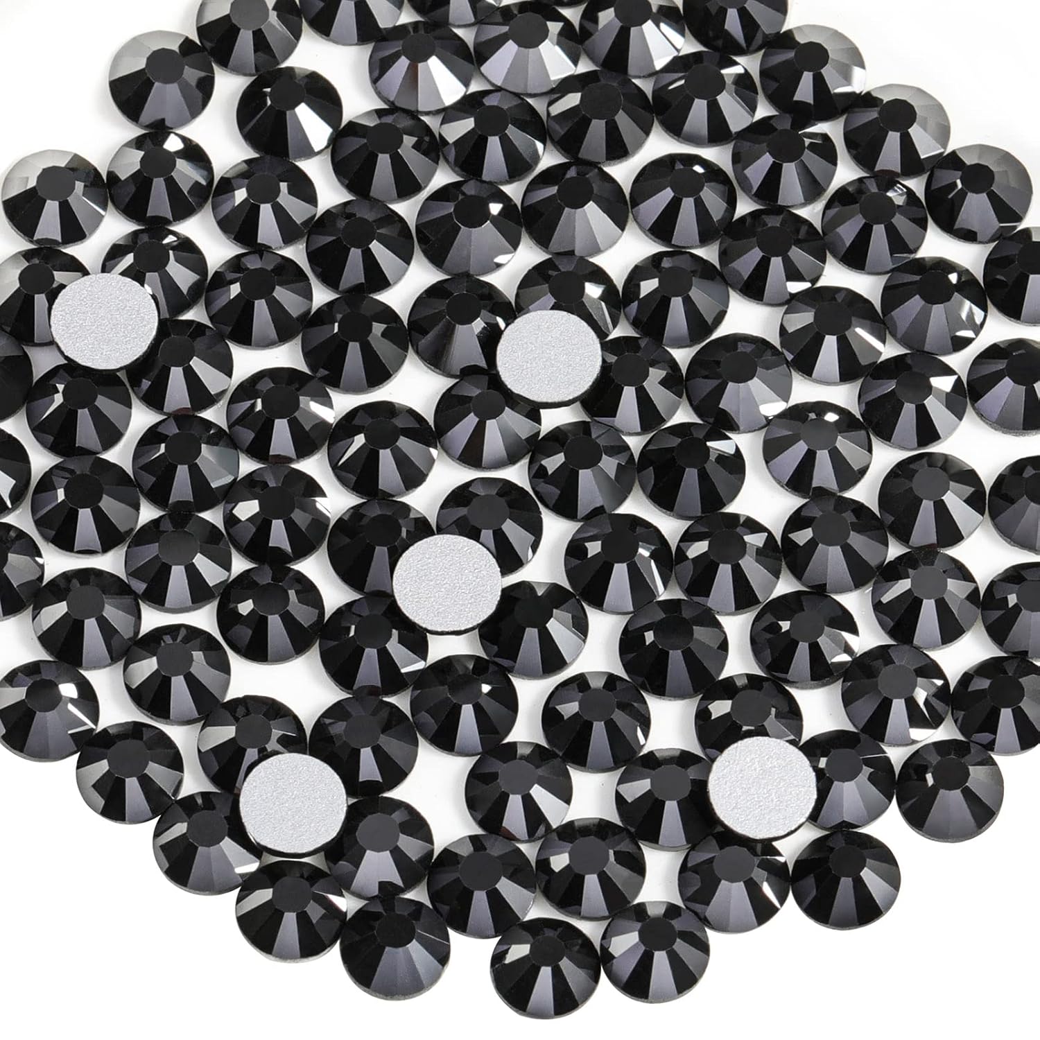 Beadsland 288pcs Flat Back Crystal Rhinestones Round Gems for Nail Art and Craft Glue Fix, Jet Hematite, SS34,7.1-7.3mm