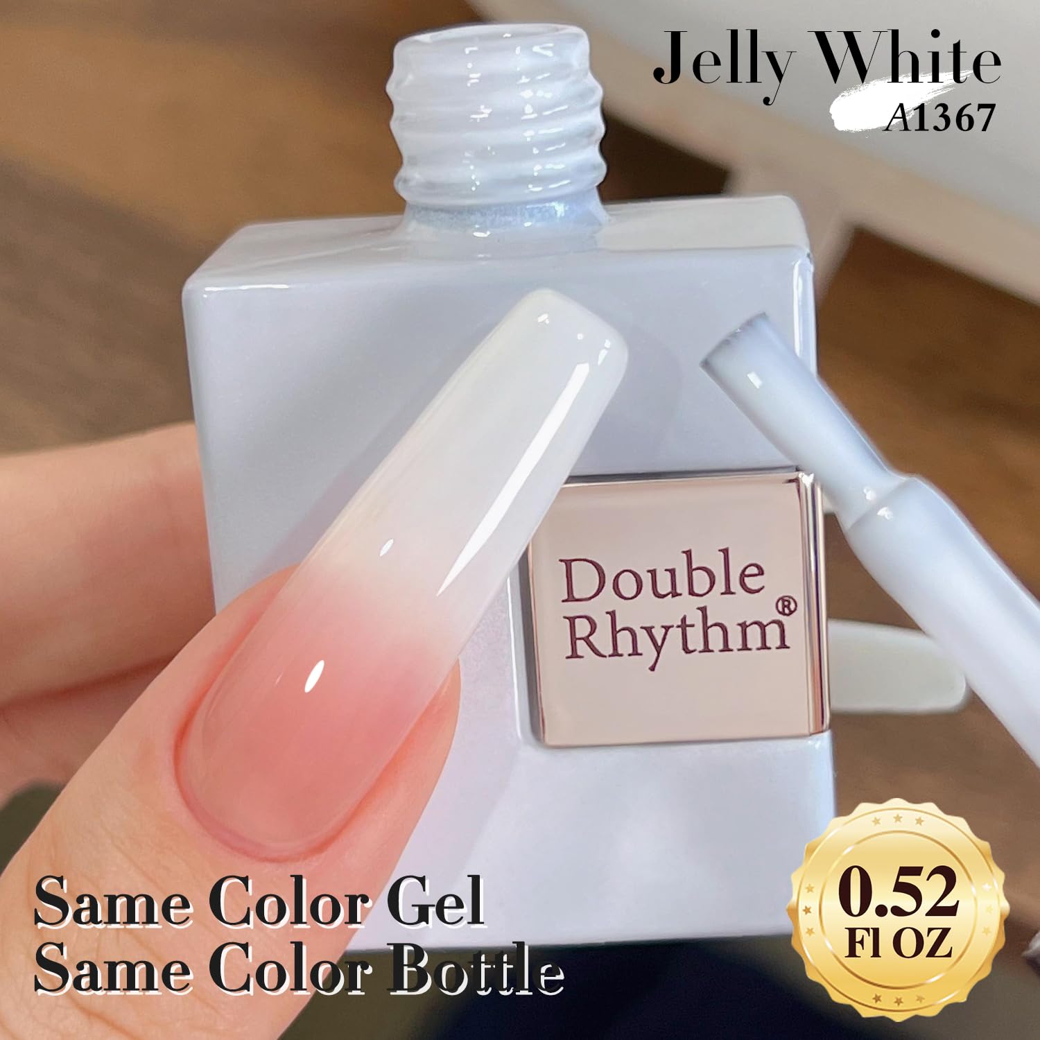 Double Rhythm Translucent Gel Polish Sheer Neutral Natural Light Milky Same Color Same Bottle 15ML Jelly Nail Polish Nail Art DIY at Home (Milky White-A1367)