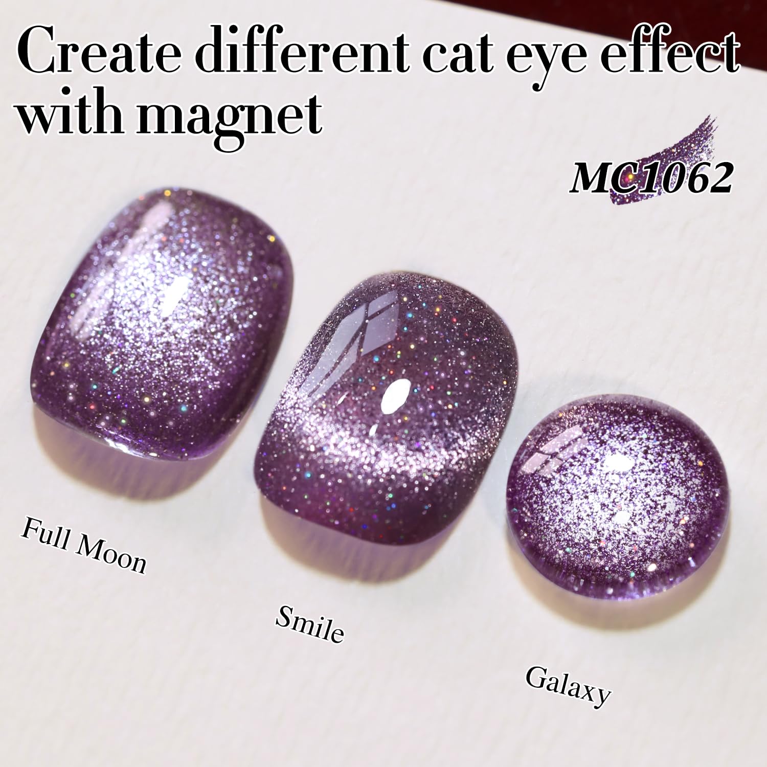 Double Rhythm 0.5 OZ Cat Eye Gel Polish with Magnet 15ML Holographic Glitter Shimmer Translucent Jelly Color Magnetic Nail Polish Salon DIY at Home (MC1062)